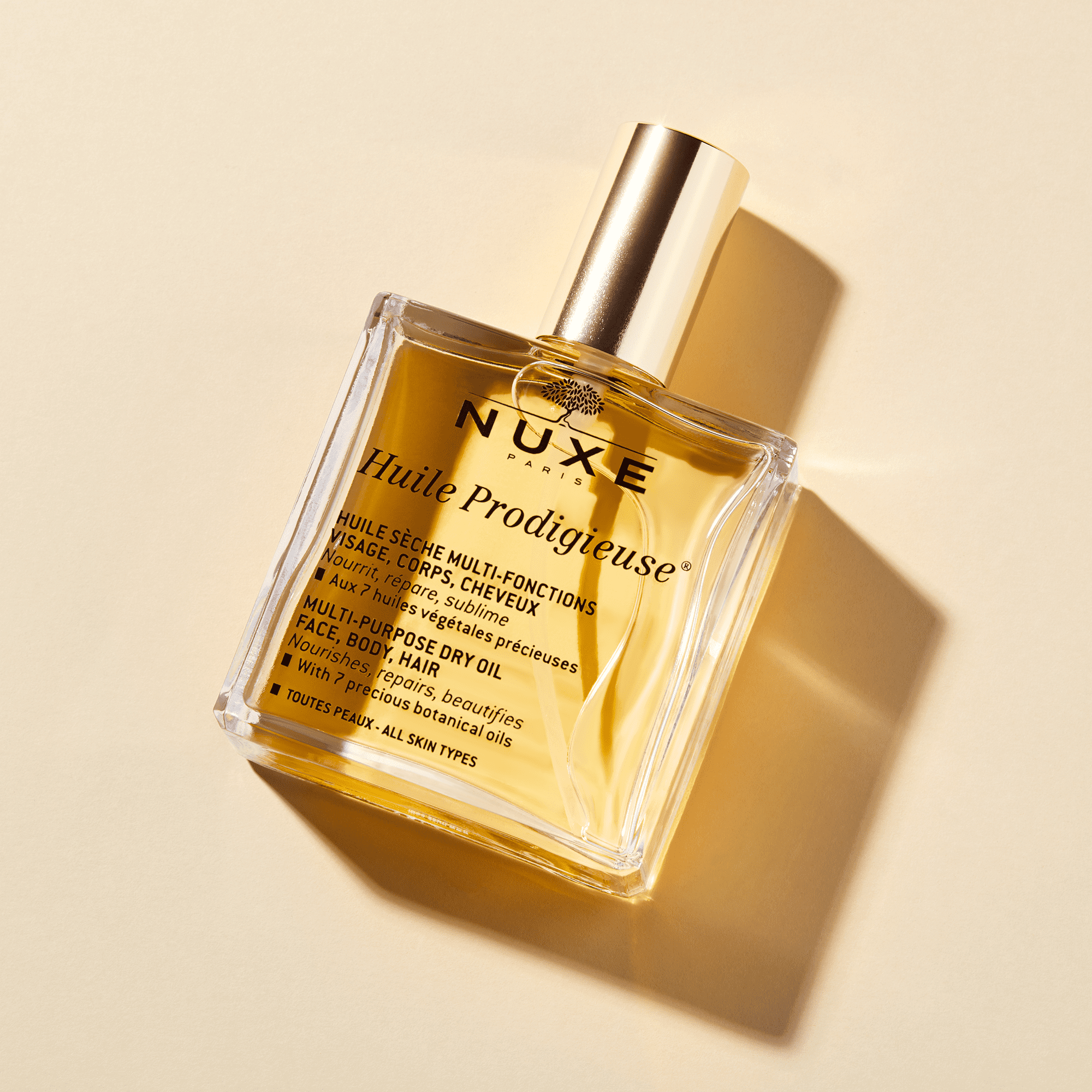 NUXEのプロディジューオイルは、7種の植物オイルを使用した98.1%自然由来成分配合です。 つけた瞬間に髪の隅々まで浸透し、オイルなのにベタつきない独自のドライオイル処方です。 [使用方法] ●10円玉大ほど手に取り、毛先を中心に髪全体になじませます。 (濡れた状態の髪になじませるとより乾燥を防ぎます) ●シャンプー前の集中ヘアパックとして、乾いた髪に塗布し、数分おいた後 シャンプーしてください。タオルラップなどをしていただいても効果的です。 ●ヘッドスパとして、シャンプー前の頭皮マッサージにもご使用いただけます。 ●お湯を張ったバスタブに適量溶かすと、ほのかの白濁した柔らかお湯となり、 アロマの香りで肌を潤す入浴剤となります。 また、NUXEのプロディジューオイルは髪の毛だけではなく顔、体にも使え、バスオイルにも使えるマルチ美容オイルなので使用用途は様々です。