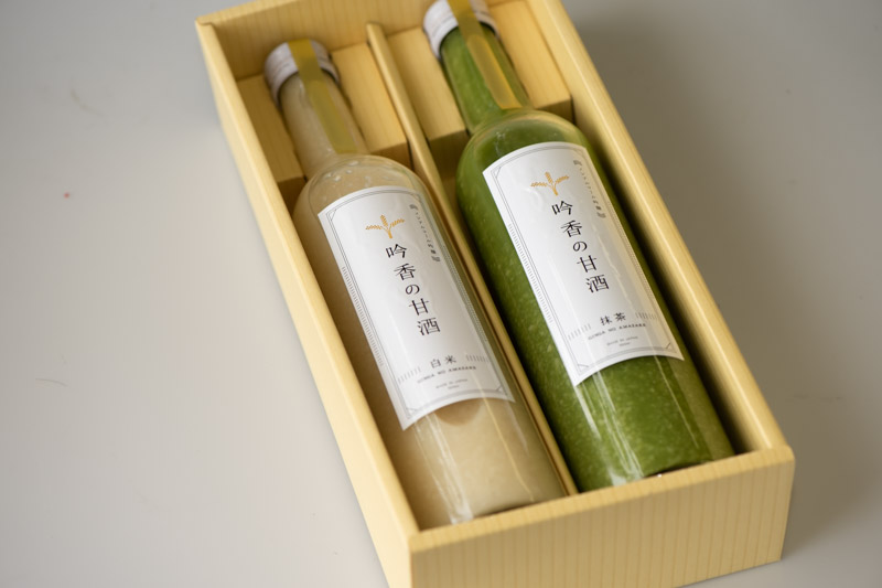 ベーシックな白米の甘酒と、人気の高い抹茶の甘酒の2種類のセットです。