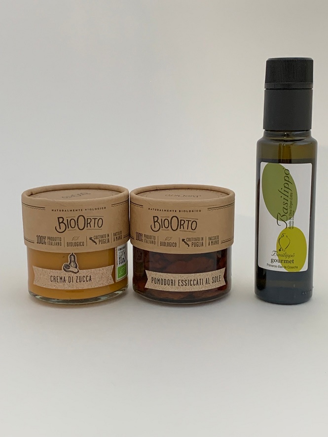 | サイズ | 200g(ドライトマト エキストラヴァージンオリーブオイル漬け) 185g(バターナッツスクワッシュ パスタソース) 100ml(バシリッポグルメ オリーブオイル) |