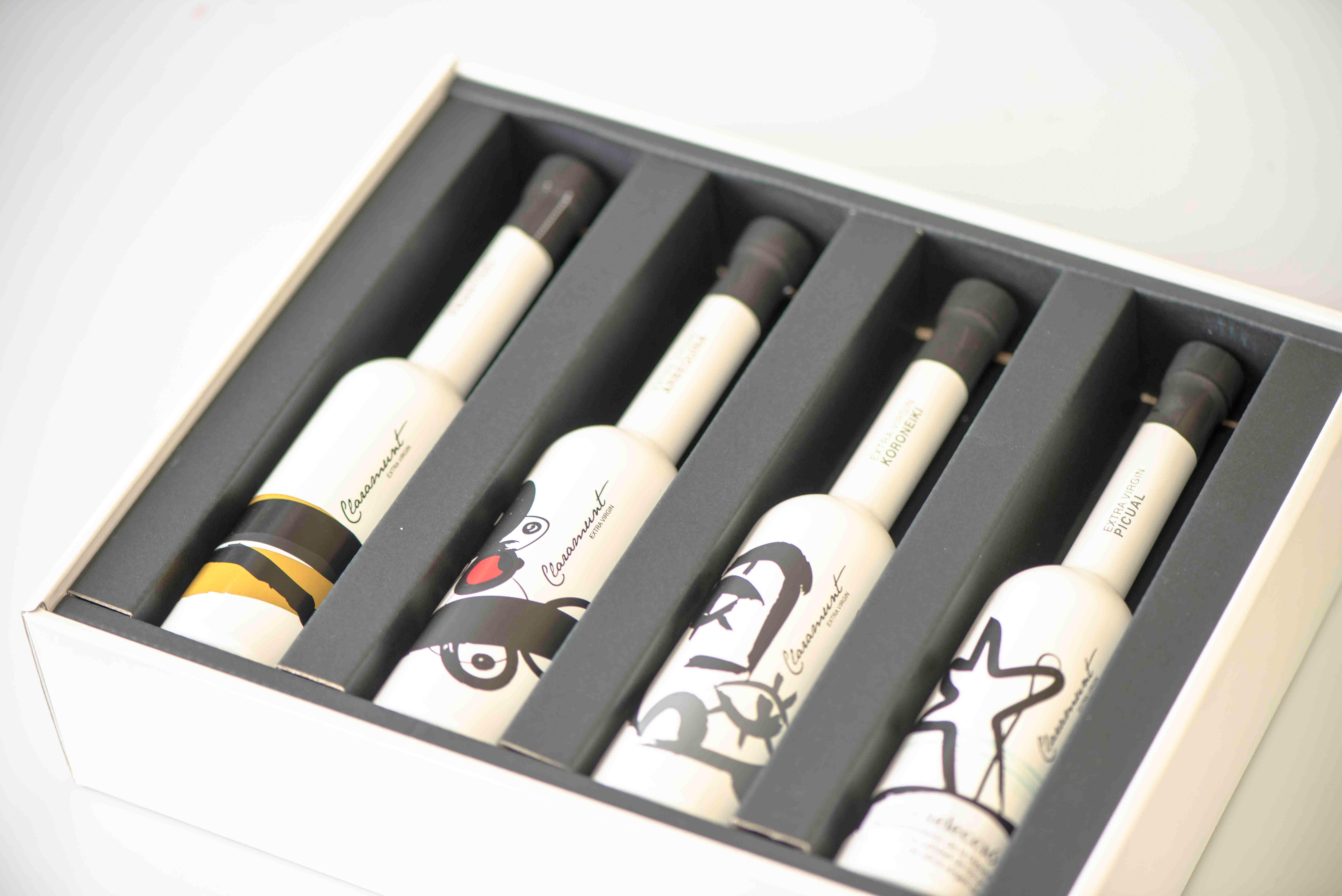 クララムントの4種(アルベキーナ、フラントイオ、ピクアル、コロネイキ)詰め合わせセット。味はもちろん、香りも楽しめる使い勝手の良い100mlボトルです。
