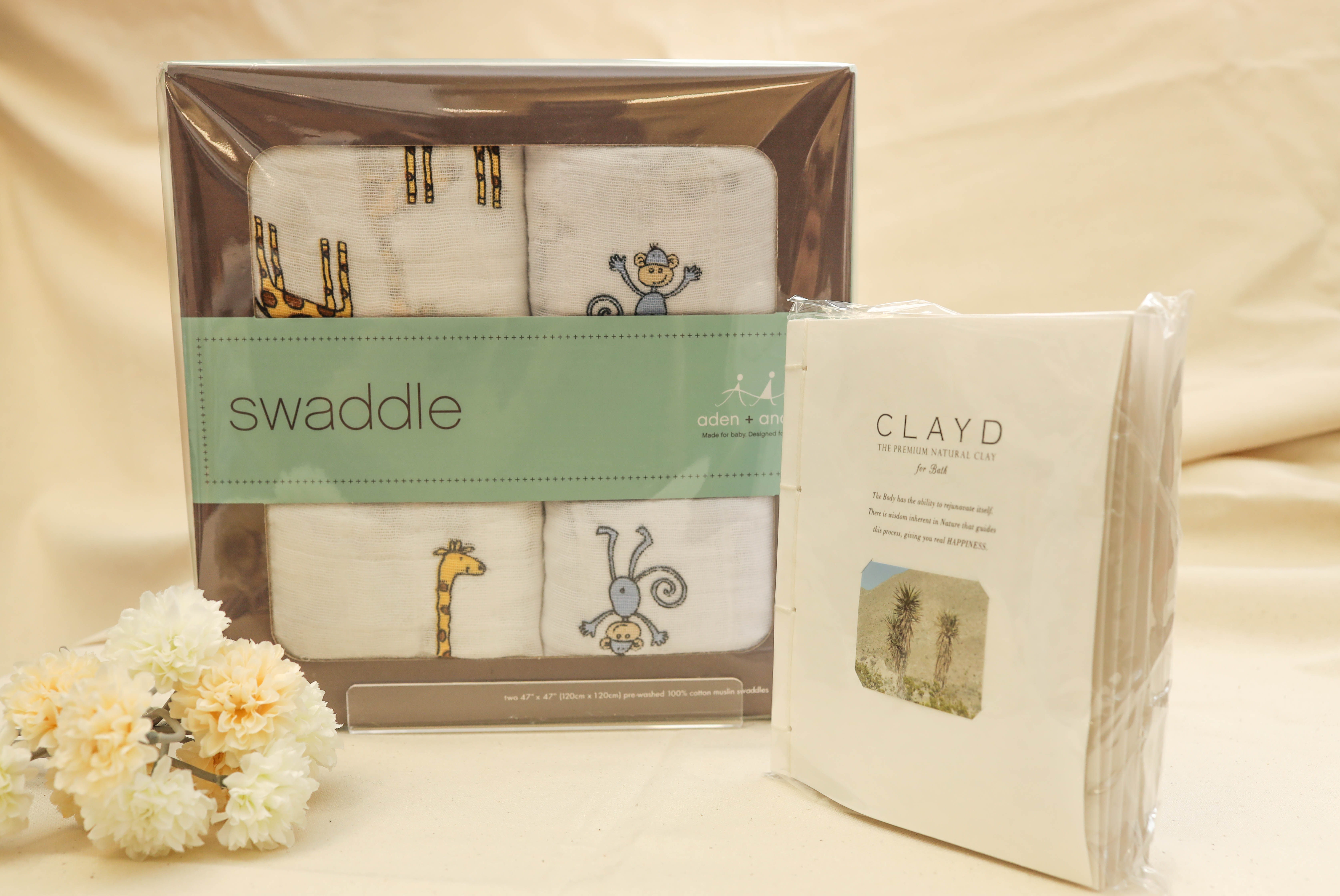 赤ちゃんの肌を守るおくるみ【aden+anais】モスリンスワドル2枚と、ご家族の疲れをいやすCLAYD WEEKBOOKのセット。 家族全員が幸せになれる贈り物です。 友人や親戚、同僚の方への出産祝いとしていかがですか?