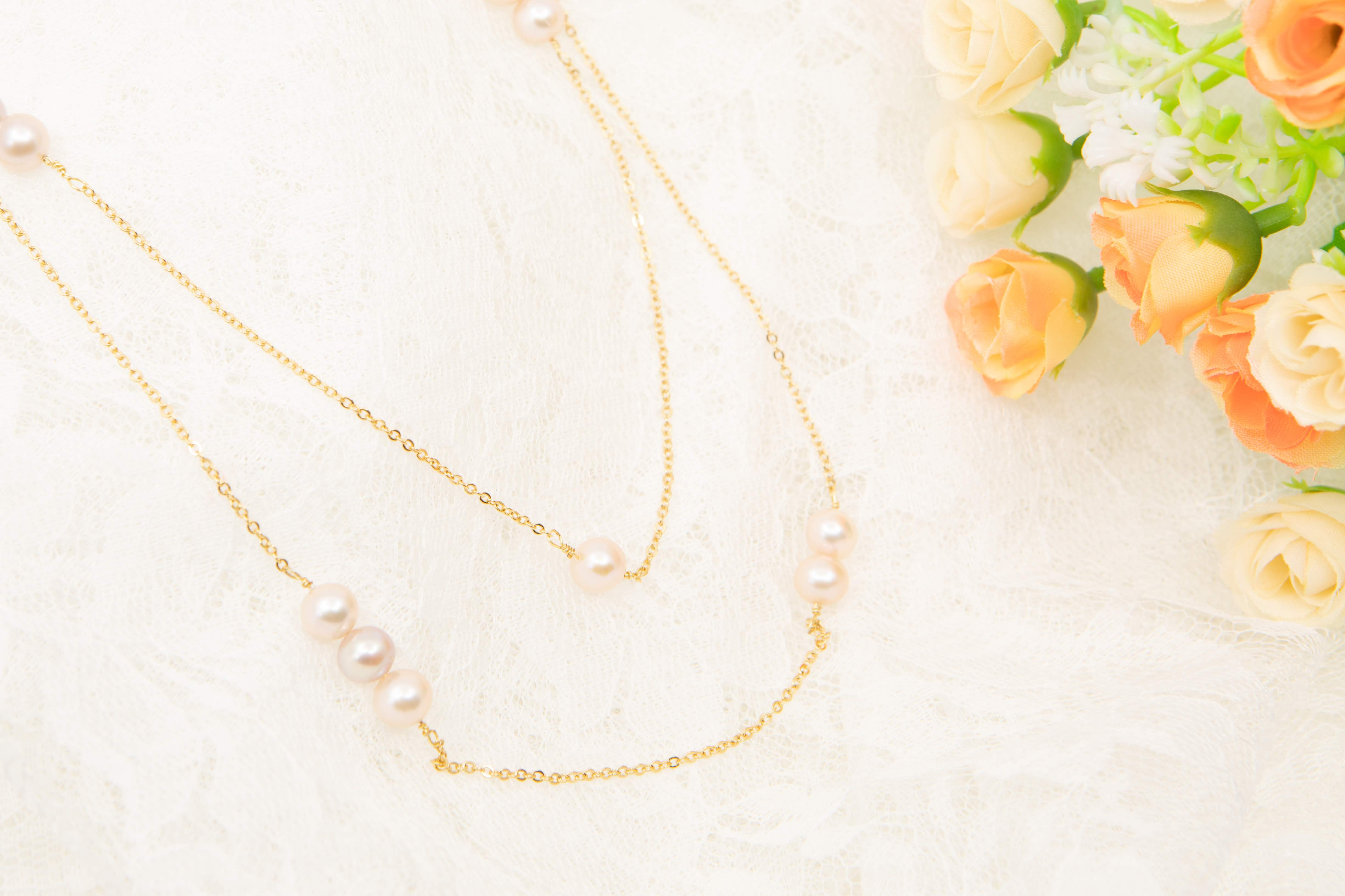 淡水の真珠の色は濃すぎず、ピンクは着けていて違和感が少なく、おしゃれに身に付けることができます。