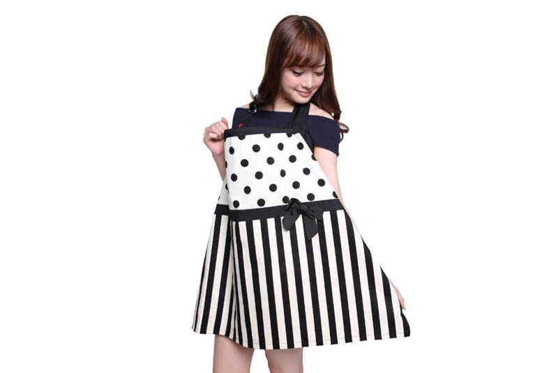 ESMERALDAの授乳ケープはオシャレなエプロンタイプです。 この授乳ケープは、胸元の部分にワイヤーが入っているため、赤ちゃんの顔を見ながら授乳する事ができ、お母さんも安心です。