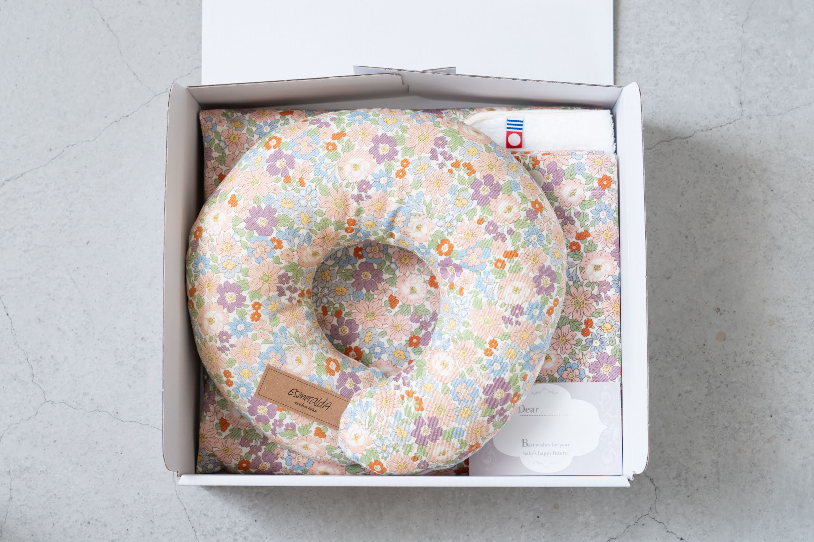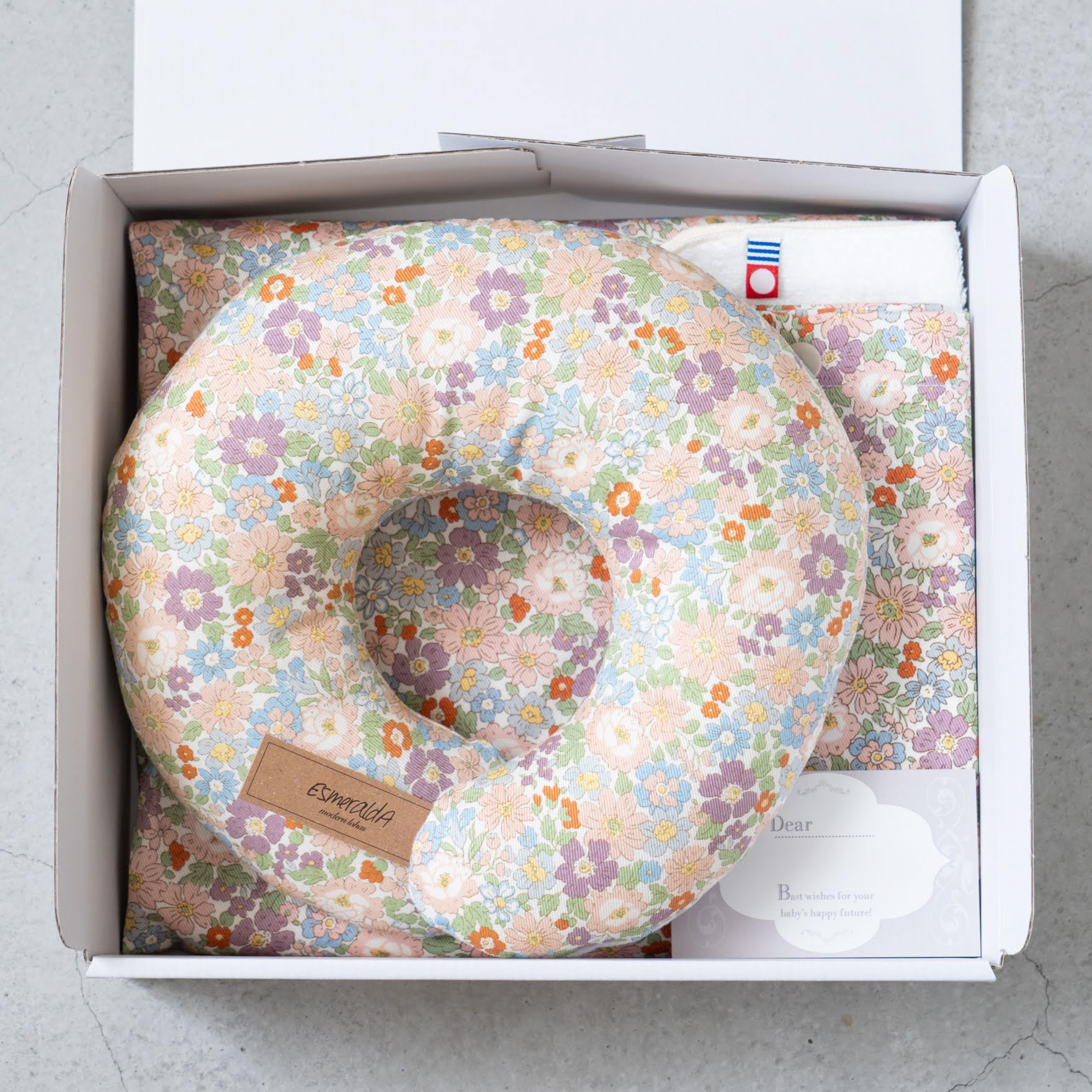 高い実用性とデザイン性を兼ね備えたESMERALDA(エスメラルダ)のギフトセットです。セット内容は授乳ケープと絶壁予防に役立つベビー枕で、お母さんにも赤ちゃんにも嬉しい組み合わせセットです。また安心安全の日本製で、カラーバリエーションも豊富です。