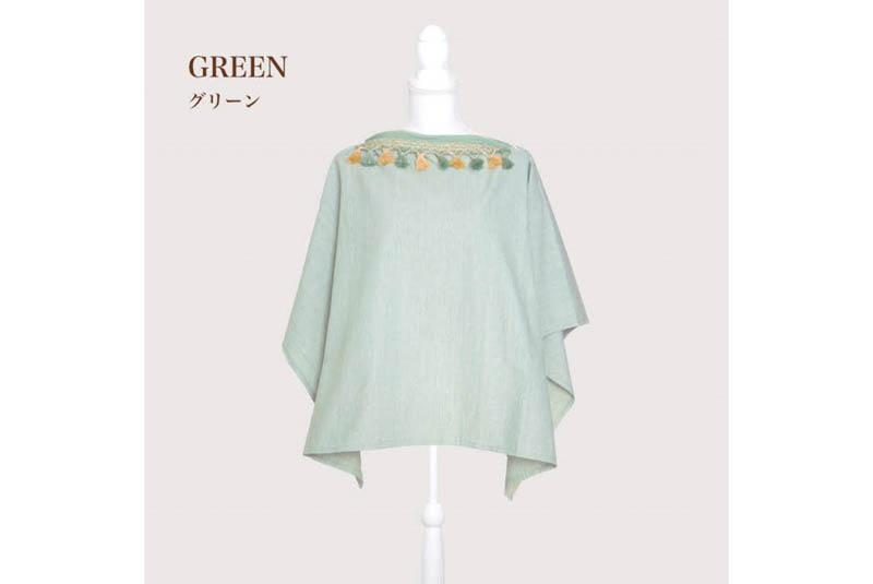 グリーンのケープと光沢のきいたイエローのタッセルがおしゃれなデザインです。 ナチュラルテイストなファッションが好きなあの人へ贈ってみませんか?
