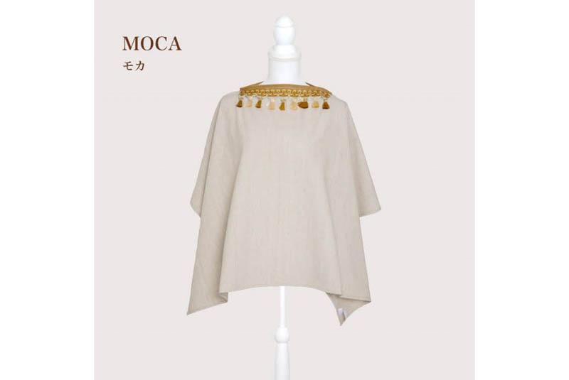 落ち着いた色合いのモカカラーのケープです。 季節を問わず合わせやすい色合いなので、通年使えます。 また性別を問わず贈れるので、二人目ベビーのことを考えて贈るのもおすすめです。