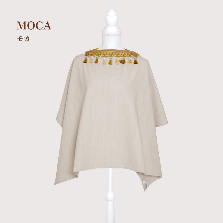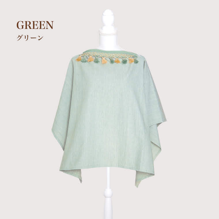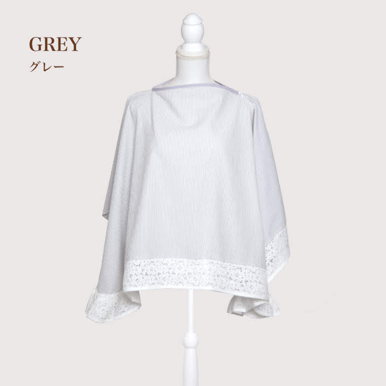 外出時に赤ちゃんがぐずりだして、授乳をしたいけど授乳室がなかなか見つからなくて困ったという経験がある方も多いかと思います。 そんな時、授乳ケープを使えば上半身をカバーして外部の目隠しになるので、いつでもどこでもさっと授乳する事が出来ます。 普段の外出時はもちろん、親戚の集まりや冠婚葬祭など男性が多く集まる席でも活躍してくれます。 服にスリットなどの開口部があって授乳しやすいように作られている授乳服も便利ですが、洗い替えも何枚か必要ですし季節によって買い替えも必要になってしまいます。 【Esmeralda】授乳ケープ ポンチョタイプは、綿100%のサラッとした着心地で季節を問わずオールシーズン使用してもらう事が出来ます。