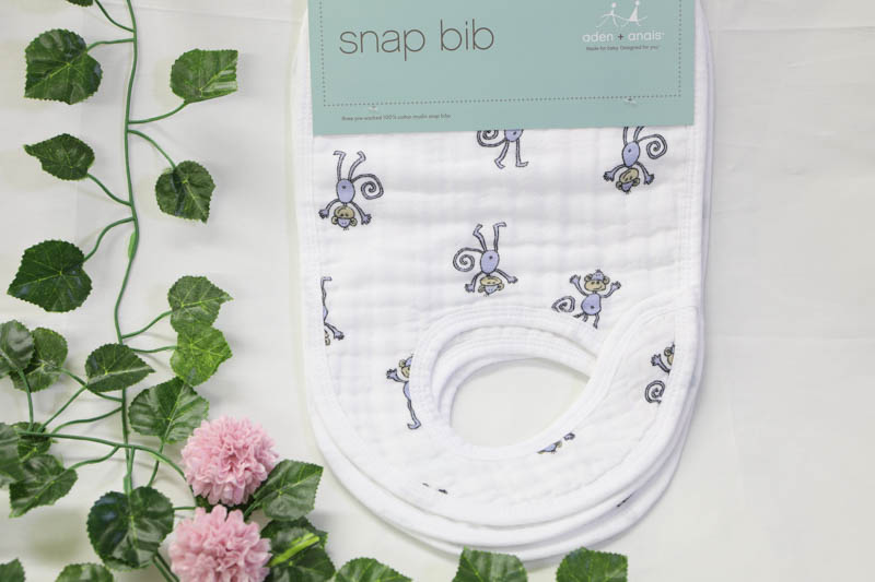 aden+anais(エイデンアンドアネイ)のスナップビブの3枚セットです。3つあるスナップボタンでサイズは調節可能なので赤ちゃんの成長に合わせて使用することができます。 また、柔らかで通気性の良いモスリンコットン素材を使用しており、耐久性があり肌触りが良いです。