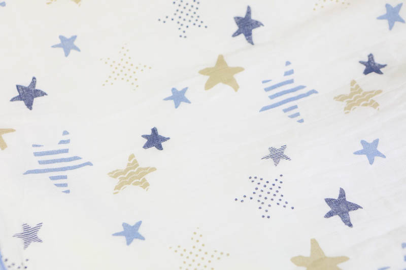 男の子用にも女の子用にも使えるrock starのデザインです。 布全体にちりばめられた星がポップでキュートです。 清潔感のある落ち着いた色合いなので、大切な人への出産祝いにもおすすめです。