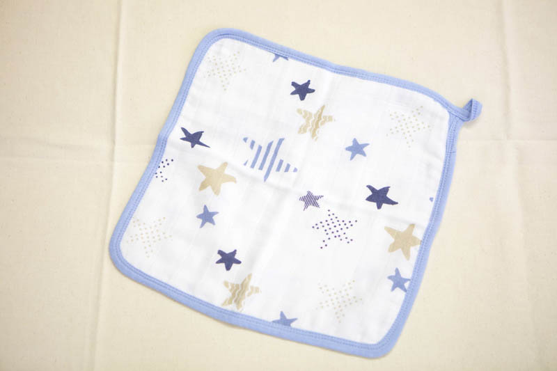 ハンカチサイズのミニタオルって、何枚あっても足らないことはありませんか? こちらはお口ふきやよだれふき、背中の汗取りに便利なウォッシュクロスです。 生地が厚手で吸水性に優れているので、繰り返し使用しても型崩れしません。 そしてもちろん繊細な赤ちゃんの肌にも安心してお使いいただけます。 四隅の一か所に輪っかが付いているので、ベビーカーなどにひっかけておくのにも便利です。