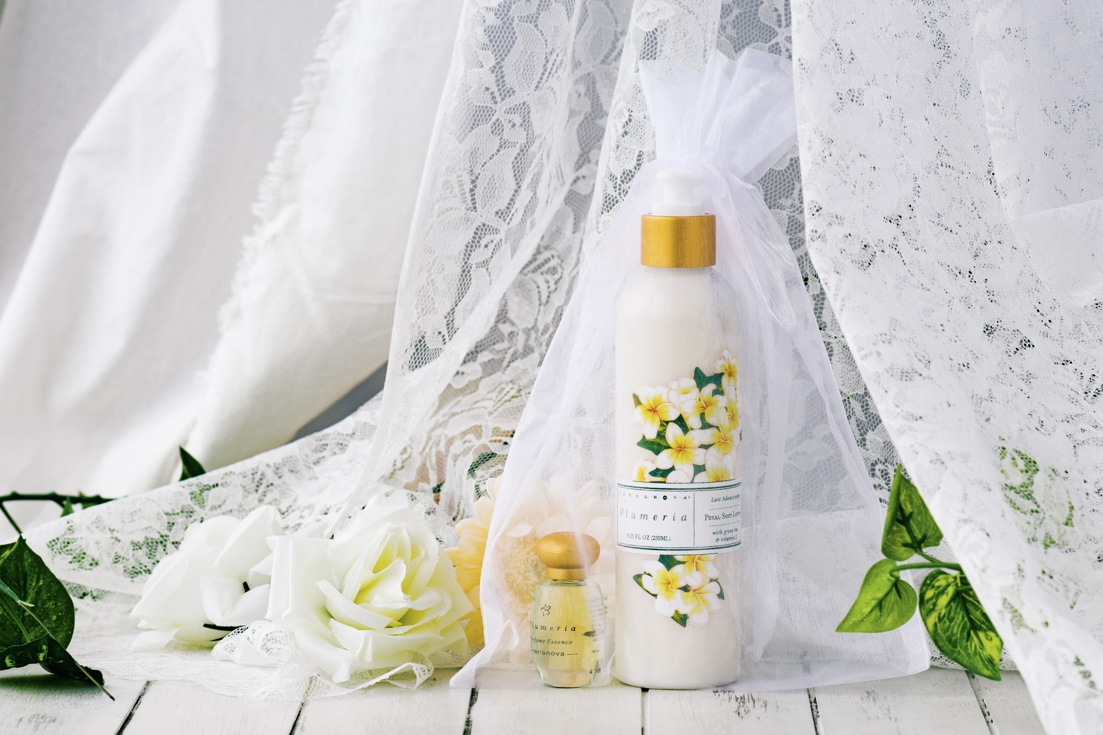 自然であることをモットーとしたボディケア製品をお届けする【TERRANOVA】のソフトローションとパフュームエッセンスのセット。プルメリアの香りは純粋で純潔な香り。ほんのり香るソフトローションと日中も爽やかに香るパフュームで1日を素敵な時間に。