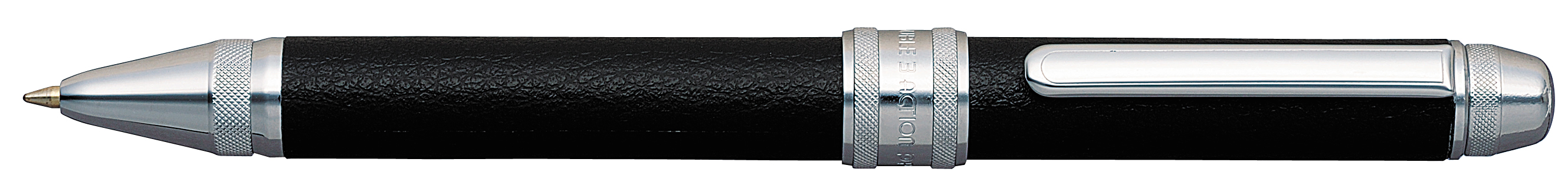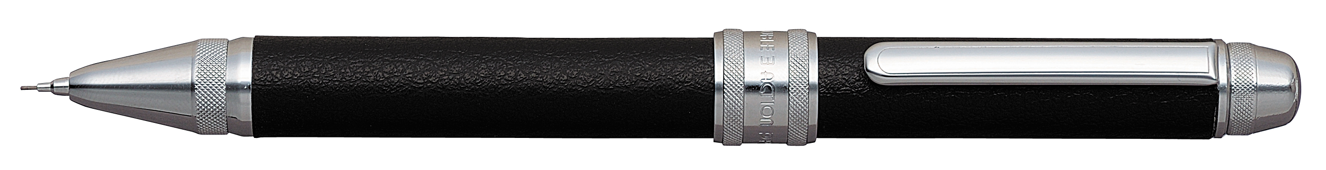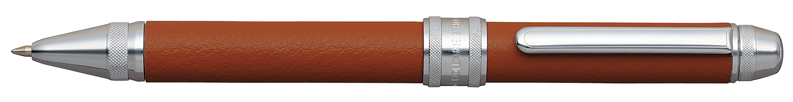 大口注文・法人のお問い合わせはこちら厳選された牛本革を軸に均一に巻き込み、温かさと気品に溢れた3機能複合筆記具。3機能(シャープ+ボールペン黒・赤)搭載の複合筆記具です。切り替えも簡単にできて便利です。重厚感のある仕上がりで、機能と使い心地を調和させた逸品です。 繰り出し式の筆記具のため、ペンケースやポケットの中で芯が出て、汚れてしまうなどの心配がないのもポイントです。