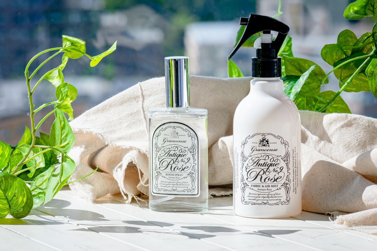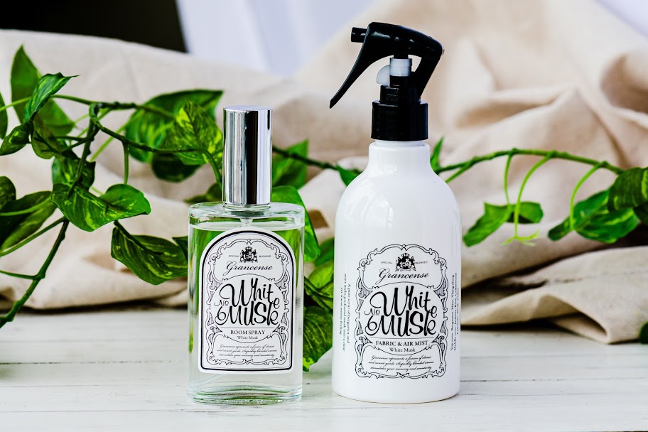 ホワイトムスクの落ち着く香りとアンティークローズの心が穏やかになるような香りのルームスプレー×ファブリック&エアミストセットです。