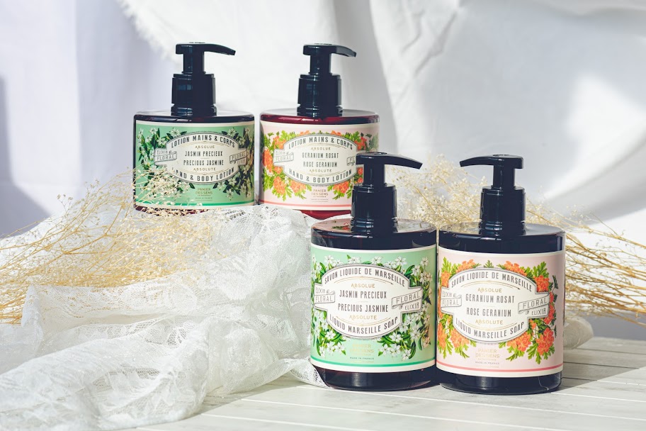 マルセイユ地方の伝統的な製法で作られたリキッドソープ。 オリーブオイル、ココナッツオイル、グリセリン(いずれも保湿成分)配合で、肌をいたわりながらやさしく洗い上げます。 ローズゼラニウム:ローズゼラニウムとピオニーが華やかに広がるフレッシュフローラルの香り ジャスミン:ピュアでいきいきとしたジャスミンがきらめくホワイトブーケの香り