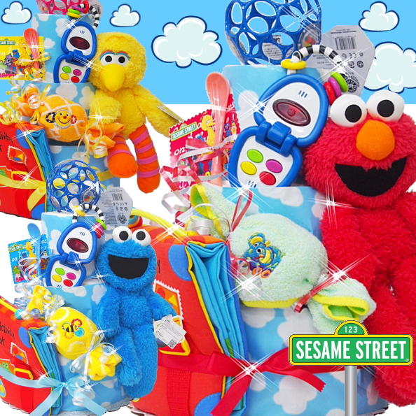 信頼あるブランド【AIRIM BABY】のセサミストリート三段おむつケーキです。一つ一つデザイナーが心を込めて丁寧に作りました。