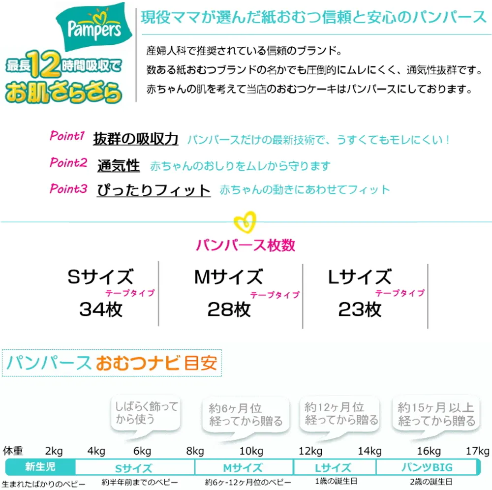 パンパースは産婦人科で推奨されているブランド。 数ある紙おむつブランドの中でも圧倒的にムレにくく、通気性抜群です。 赤ちゃんの肌を一番に考えて作られた紙おむつです。
