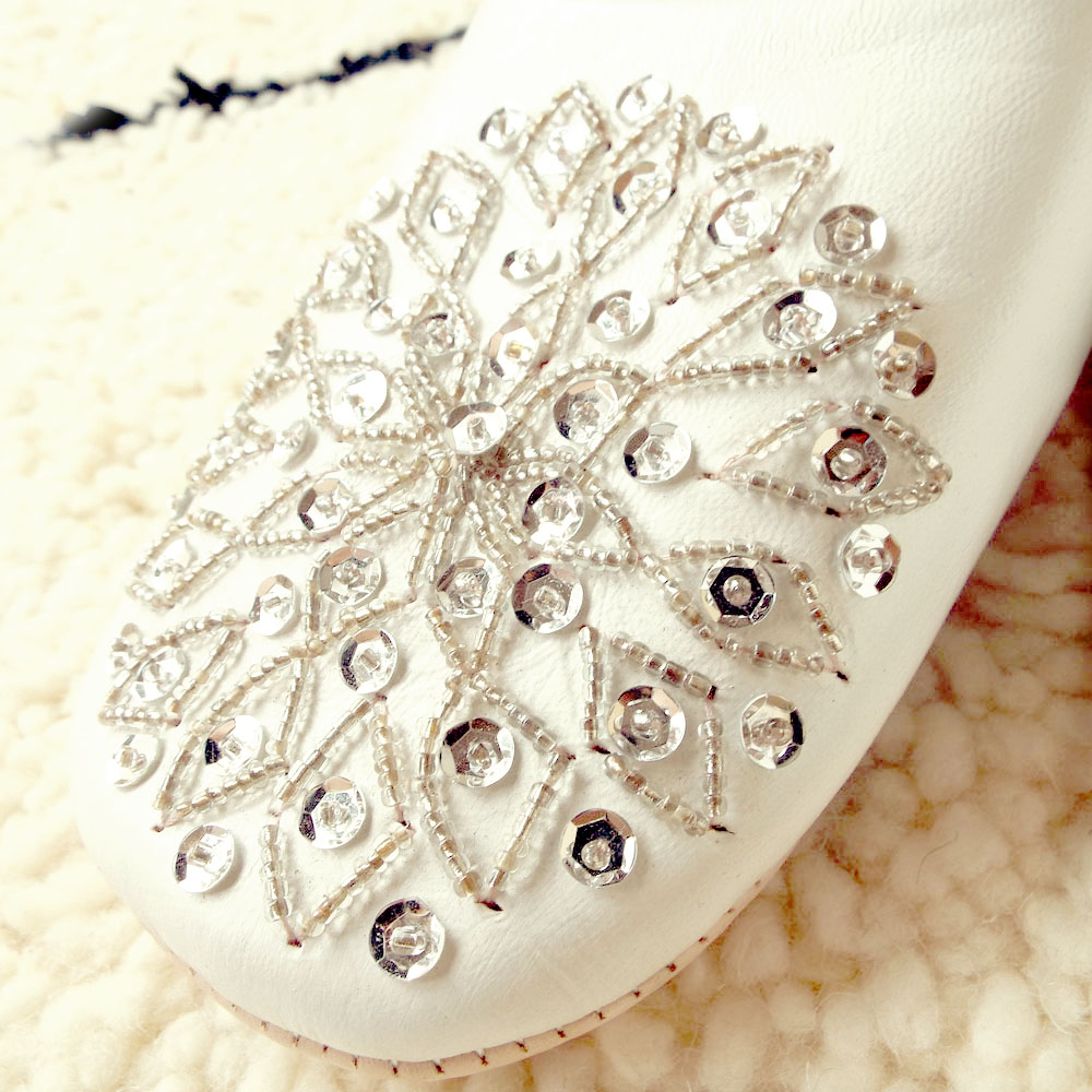 ※バブーシュは革独特のにおいがします。 気になる方は、風通しの良い場所で陰干ししてからご使用下さい。 使用しているうちに気にならなくなってまいります。 ※長く保管しているとカビが生える可能性があります。 時々、出して日光に当てて乾燥させてお手入れをしてください。 ※全ての製作は手作業で、シューズ内側などに製作時のペン跡などや、革張りの際の汚れが確認できることがあります。大きなものは検品時によけて良品をご提供しております。 ※ビーズ・スパンコール・縫い糸の色が入荷時期により多少違う場合がございます。 ご了承の上お買い求めいただきますようお願いいたします。