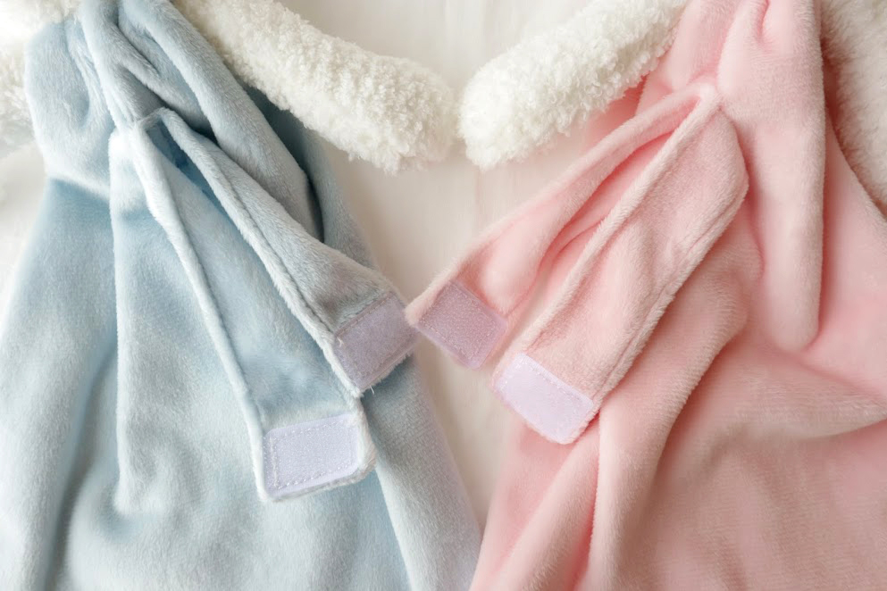 ぬいぐるみとブランケットが一緒になった、とってもキュートなミニサイズのベビーブランケットです。 ベロア生地で柔らかくふわふわの肌触りなので、デリケートな赤ちゃんの肌にも安心して使えます。 後ろにはマジックテープのループも付いているので、ベビーカーやチャイルドシートに取り付けて使う事も出来ます。 お昼寝のときや、チャイルドシートでお出かけのときなどさっと赤ちゃんに掛けることが出来るブランケットは必須アイテム。 自宅で洗濯も出来るので、衛生面でも安心して使ってもらえます。
