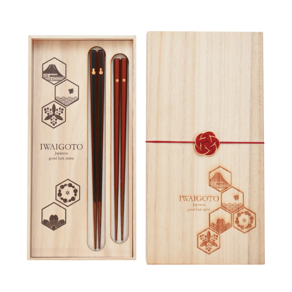 大口注文・法人のお問い合わせはこちら400年ともいわれる若狭塗の伝統技術と職人技により丁寧な手作業で作られた天然木のお箸です。縁起のいい紋様と幸せを結ぶ水引で、ラッピングとはまた違う特別な思いを伝えます。引出物として縁起の良い模様をデザインしたアイテムを作成し、意味のある贈り物に。