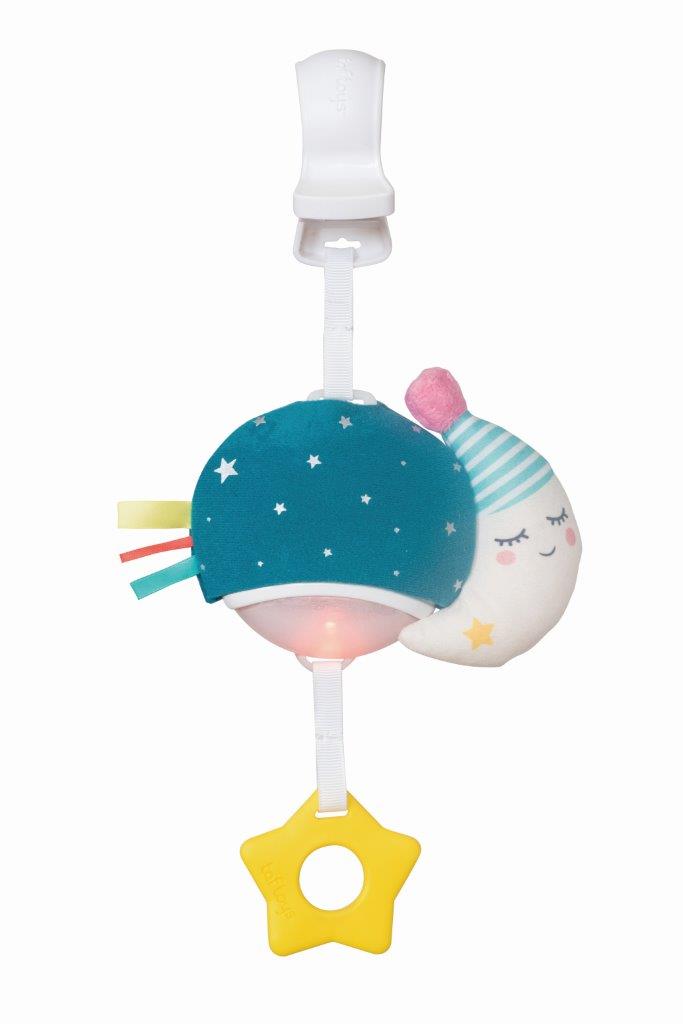 カラフルに変化する光とメロディーで、お出かけにもぴったりなミュージックトイ。歯固めの星を引っ張ると音楽が流れ、ライトがやさしく点灯します。音の種類は全部で4パターン。子どものコミュニケーションや感情を成長させる音楽を選んで編曲されています。