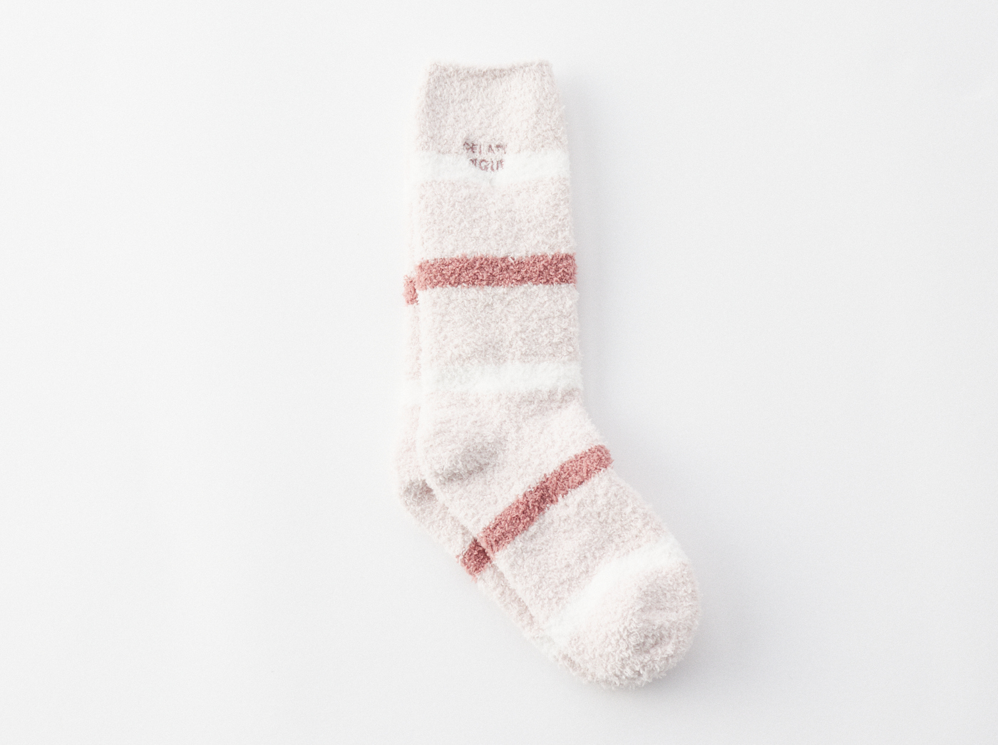 足元でちょうどよいアクセントになってくれそうな、ふわふわと心地よいソックスです。