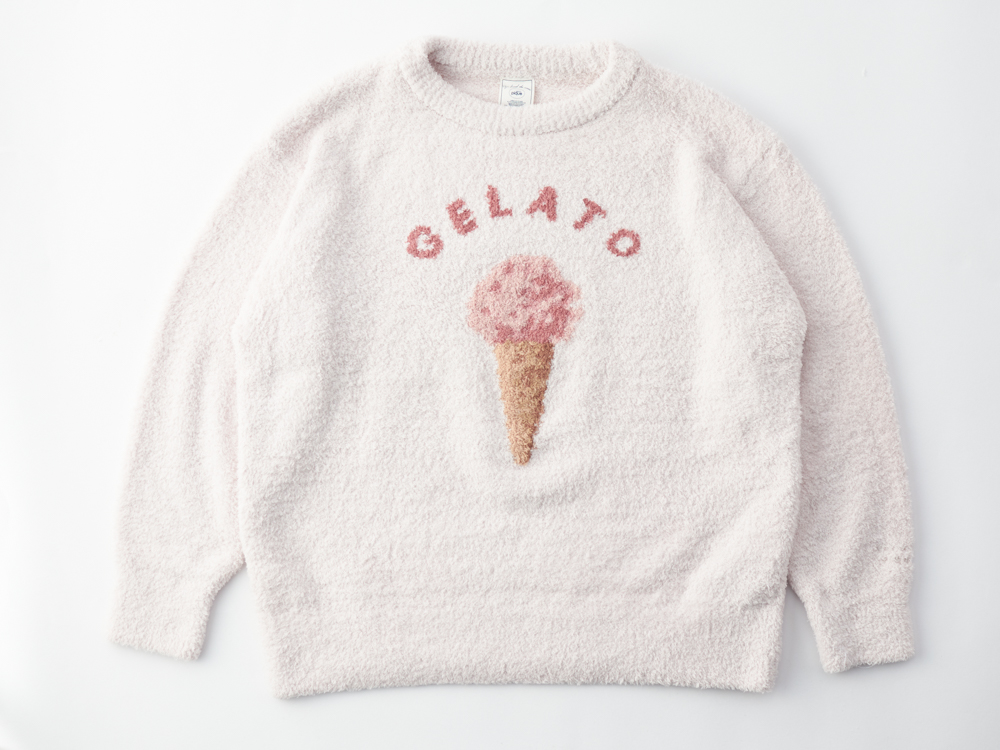 GELATO PIQUEの人気デザインでもある暖かくてモコモコのジャガードシリーズ。今回はHOMMEラインとお揃いで楽しめるジェラートアイス柄のプルオーバーをご用意しました。短毛なモコモコ素材なのでアイスのジャガードも際立って、ポップでスウィートなペアコーデが叶います。