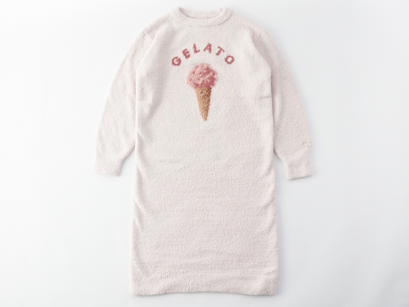 GELATO PIQUEの人気デザインでもある暖かくてモコモコのジャガードシリーズ。今回はHOMMEラインとお揃いで楽しめるジェラートアイス柄のワンピースをご用意しました。短毛なモコモコ素材なのでアイスのジャガードも際立って、ポップでスウィートなペアコーデが叶います。ナチュラルなオフホワイトとスウィートなピンクの2色展開です。