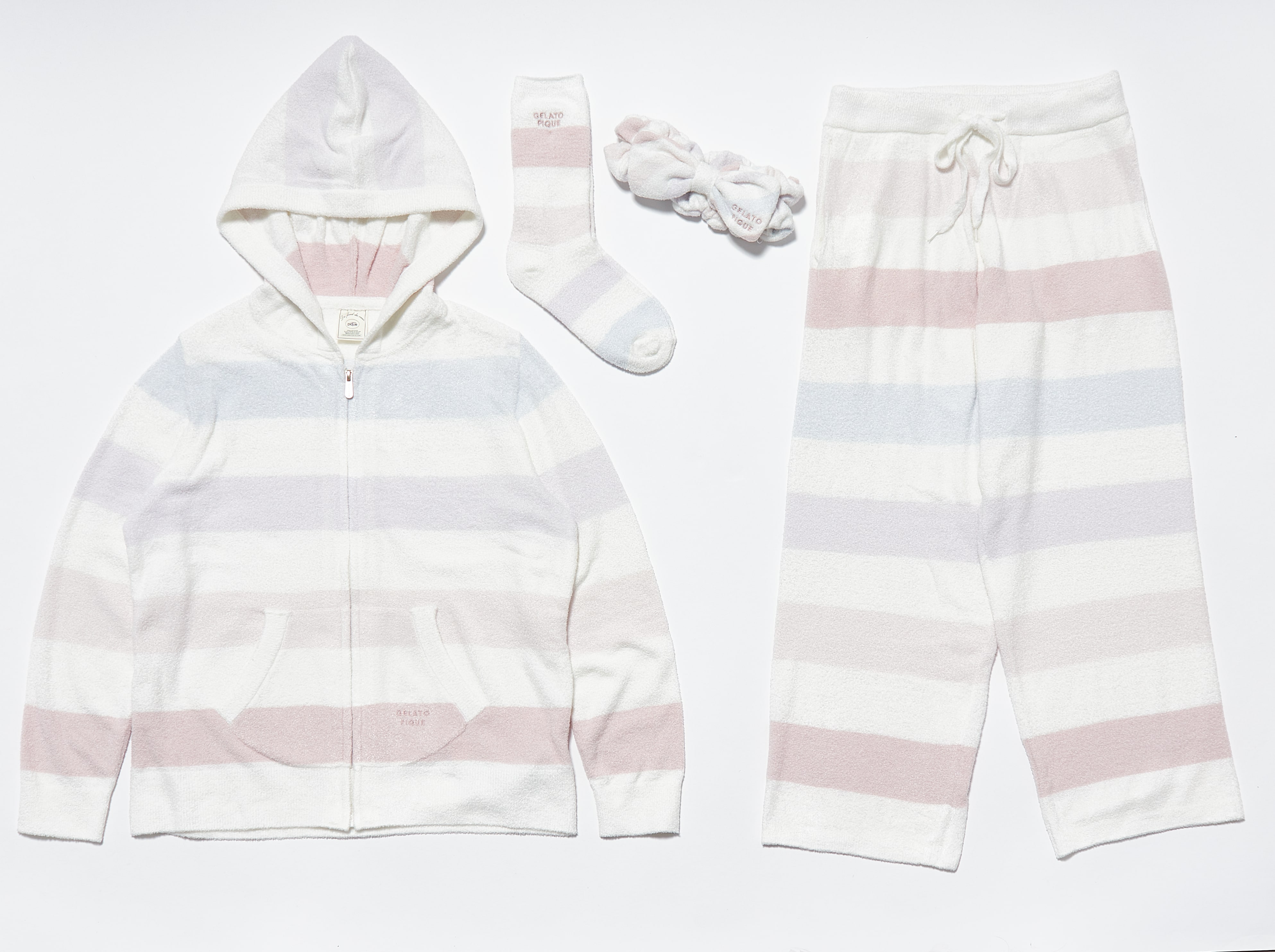 【30%OFFセール中!】思わず何度も撫でたくなるなめらかな肌触りが気持ちいい「gelato pique(ジェラートピケ)」のルームウェアセット。パステルカラーのボーダーが可愛いお揃いの生地でパーカー、ロングパンツ、ヘアバンドをセットにしました。オールシーズン活躍してくれる着心地のよさが魅力。