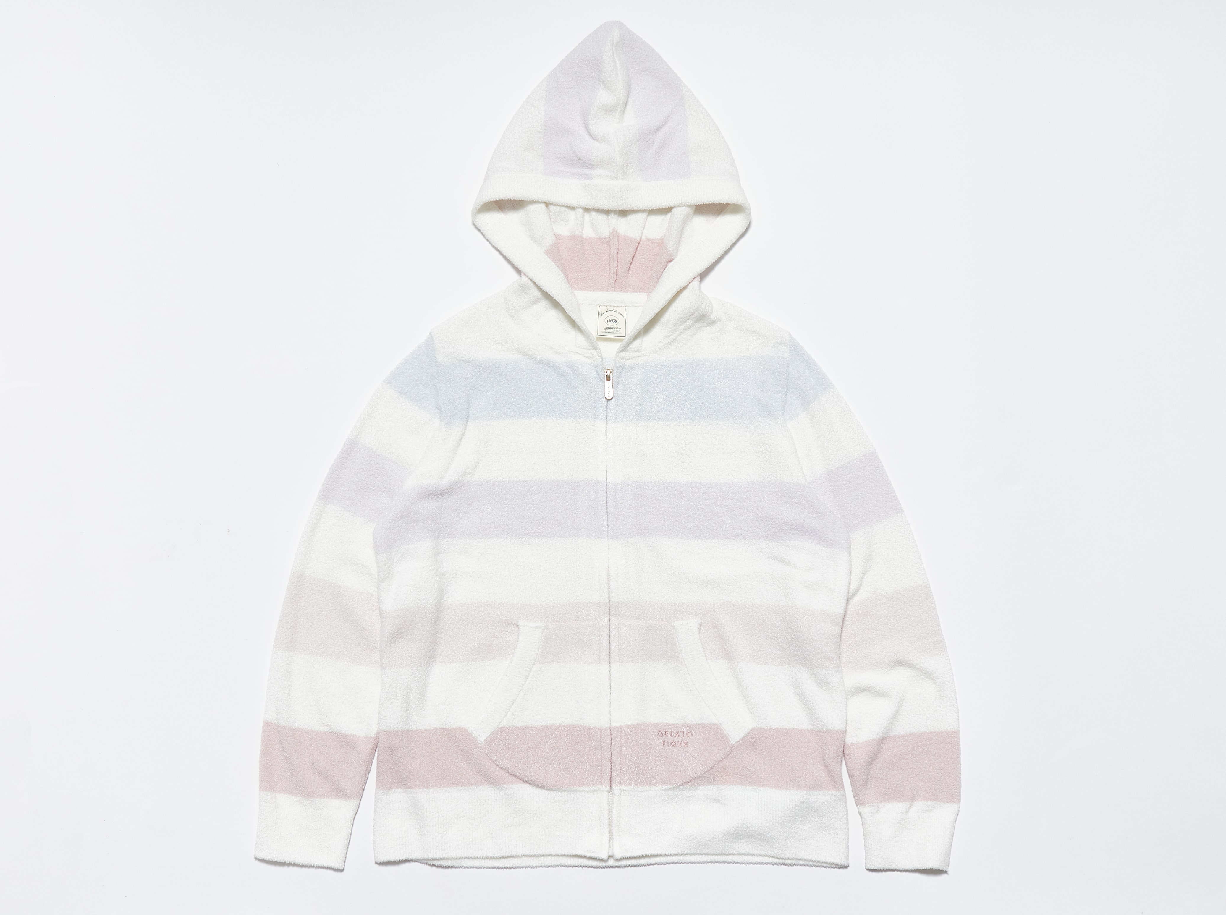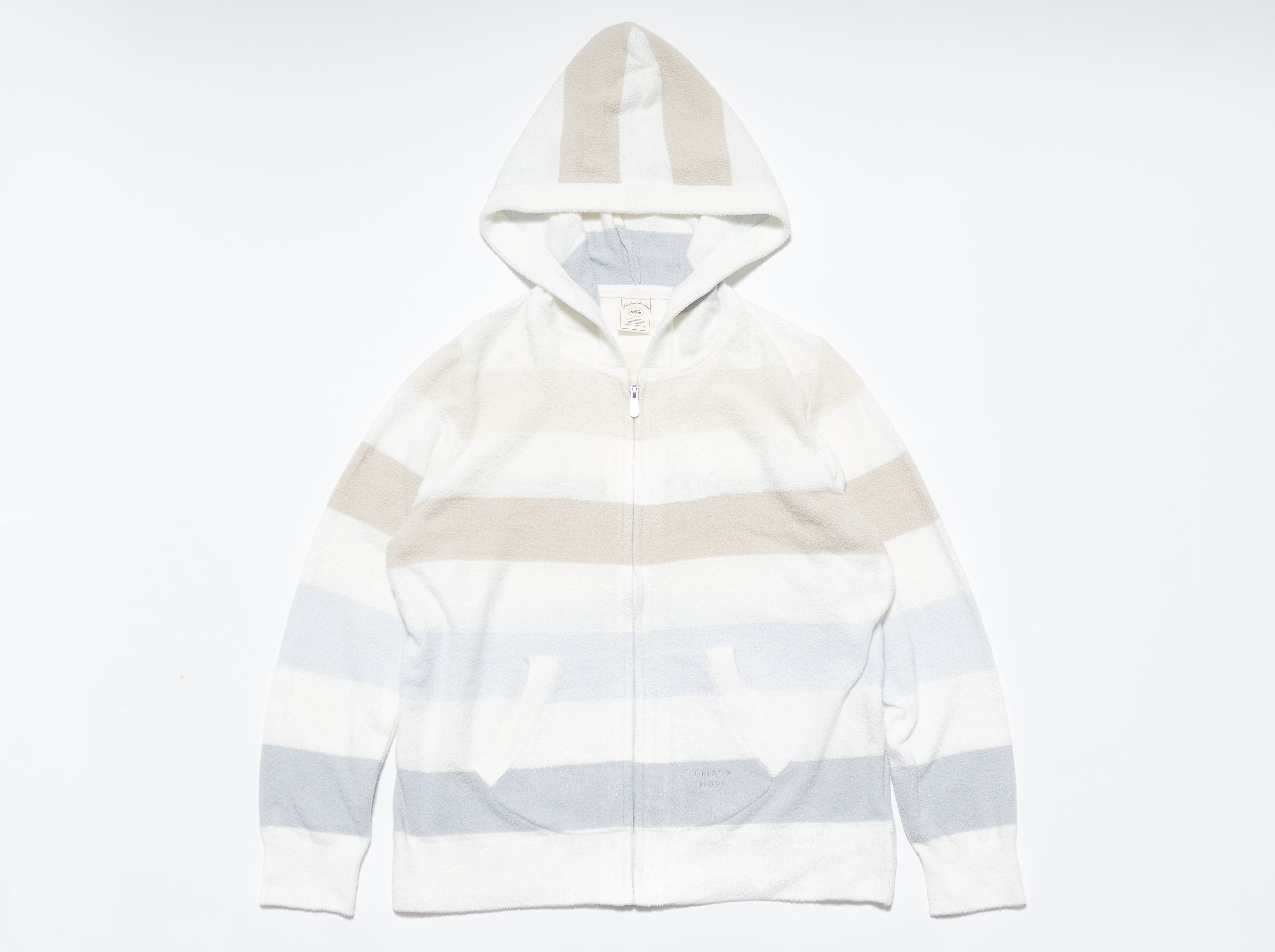 地球にやさしく、シルキーでなめらかなリサイクルスムーズィーで作ったジップパーカーです。春らしい淡い5色を使ったボーダーは表情豊かでちょっぴり個性的。