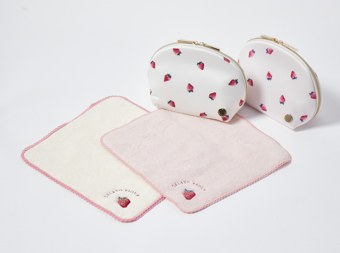 【30%OFF セール中】¥4,400→¥3,080 “大人のデザート”をコンセプトにしたルームウェアブランド「gelato pique(ジェラートピケ)」のストロベリー柄ポーチとハンドタオルのセットです。可愛いストロベリーのがデザインが女性らしさを引き立てます。色はオフホワイトとピンクの2色展開です。
