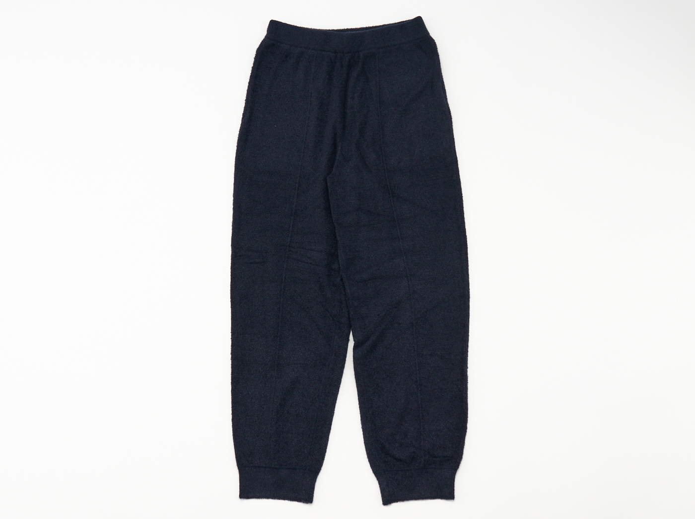 落ち着いた大人っぽいカラーリングのロングパンツは、スポーティなトラックパンツをイメージしたセンターシーム。内股部分にギザギザのミシンステッチを入れるなど、小さなディテールにもこだわりました。
