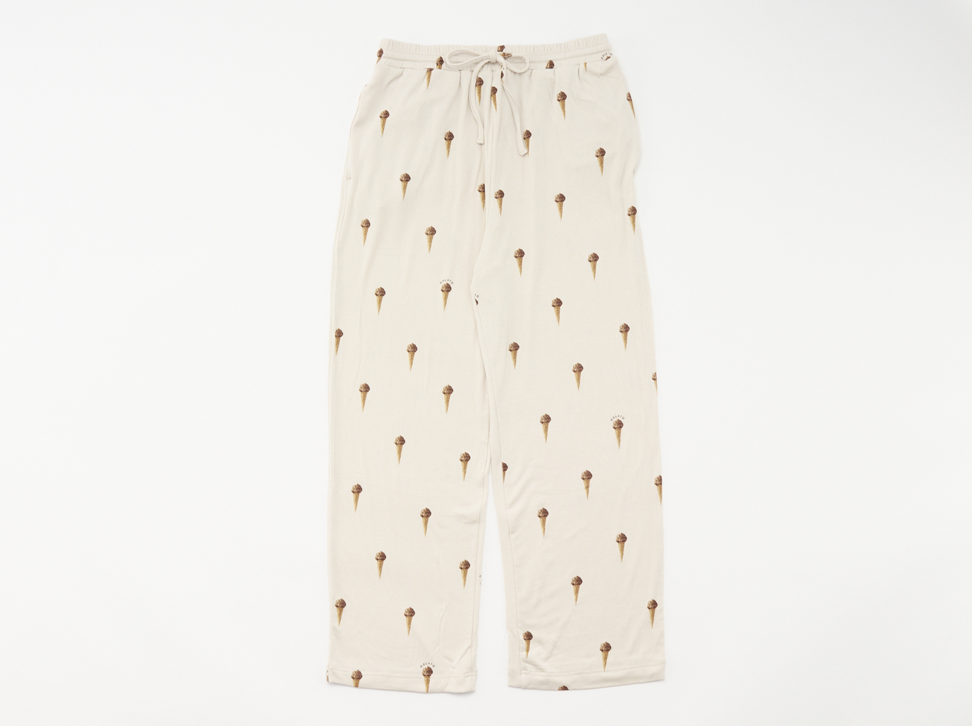 しっかり厚みはありつつも、ふっくら柔らかく落ち感が美しいフライス地を使いました。ジェラートの総柄プリントで、淡いブラウンをご用意しています。