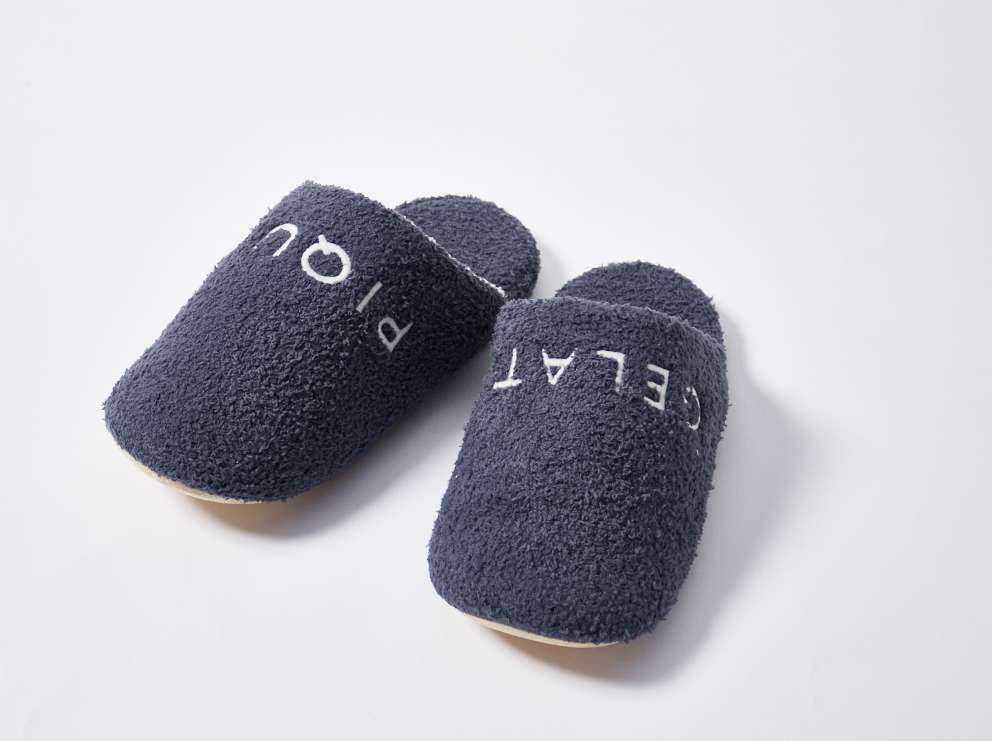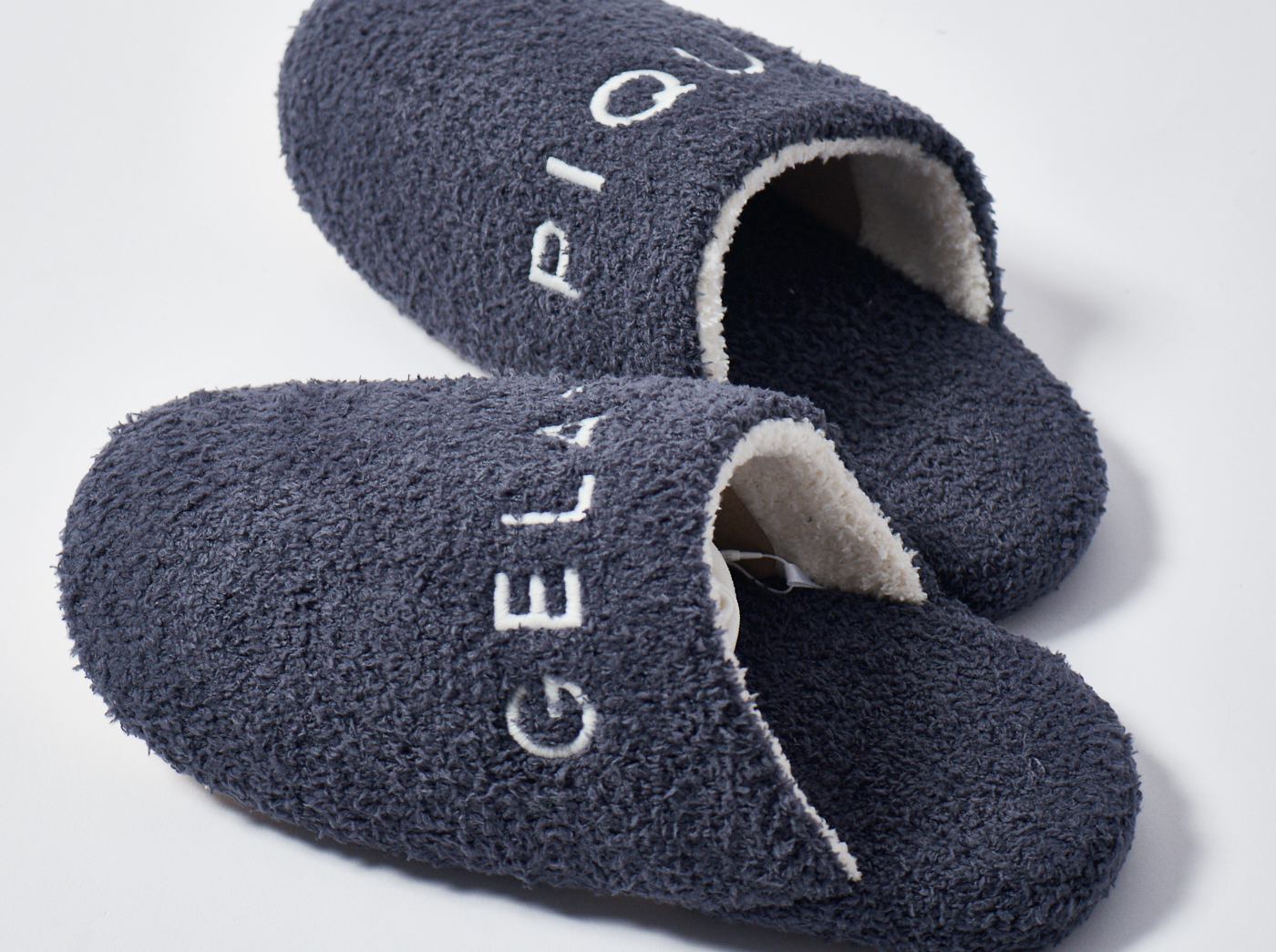 大口注文・法人のお問い合わせはこちら足裏をさらっと心地よくキープするパウダー素材の大人っぽいルームシューズ。シックなネイビーカラーでお届け。左右でGELATO PIQUEのシンプルなロゴを表現しています。