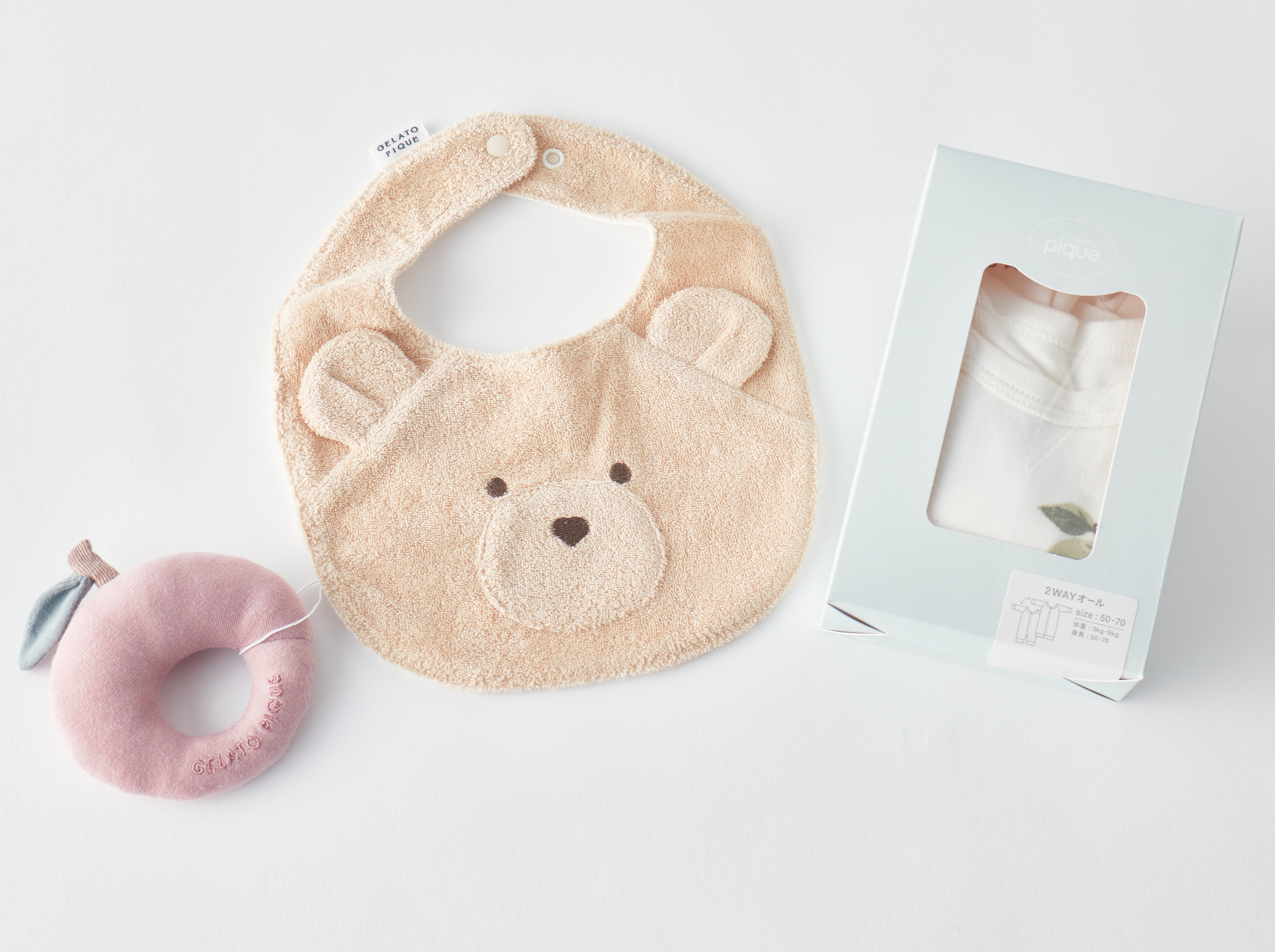 【20%OFF セール中】¥9,460→¥7,568 “大人のデザート”をコンセプトにしたルームウェアブランド「gelato pique(ジェラートピケ)」の出産祝いのギフトにぴったりな3点セットです。フルーツアニマル柄の2WAYオール、リバーシブルで使用できるスタイ、リンゴモチーフのラトルをセットにしました。お世話になっている方への贈り物に。