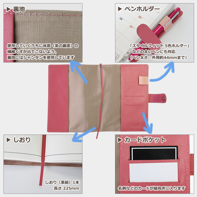 ダイゴー、高橋書店、EDiT(エディット)、NOLTY(ノルティ)、HIGHTIDE(ハイタイド)、MIDORI(ミドリ) など、お気に入りの手帳やノートのカバーに。 ※本商品はブランド「CLuaR(シールアル)」の商品であり、上記会社や各ブランドの公式商品ではありません。 ※ビニール等カバー付き手帳は、カバーを取外した状態で装着可能です。