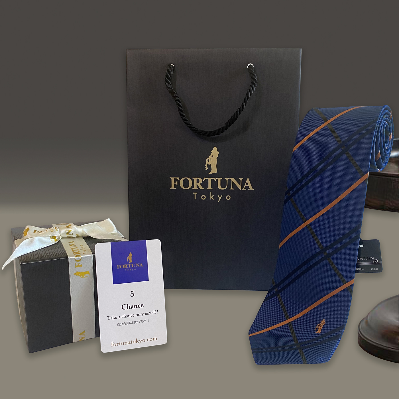 チャンスをイメージしたチェック柄の西陣織 ネクタイです。どんなシーンやスーツにもマッチし着用しやすい1番人気のデザインです。「FORTUNA Tokyo(フォーチュナトウキョウ)」は日本の伝統工芸を守り、現代にリバイバルすることをミッションとした国産ブランドです。