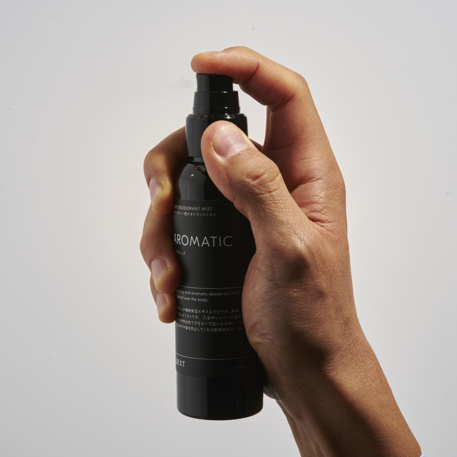 大人の男性向けエチケット専門ブランド「DEXT(デクスト)」のオーガニック植物保湿エキス入りデオドラントミスト。汗をかいて気になる時に、シュッとひと噴きで汗やワキ臭を防止してくれる医薬部外品ミストです。清潔感のあるほのかに漂う3種類のフレーバーからお好みの香りを。