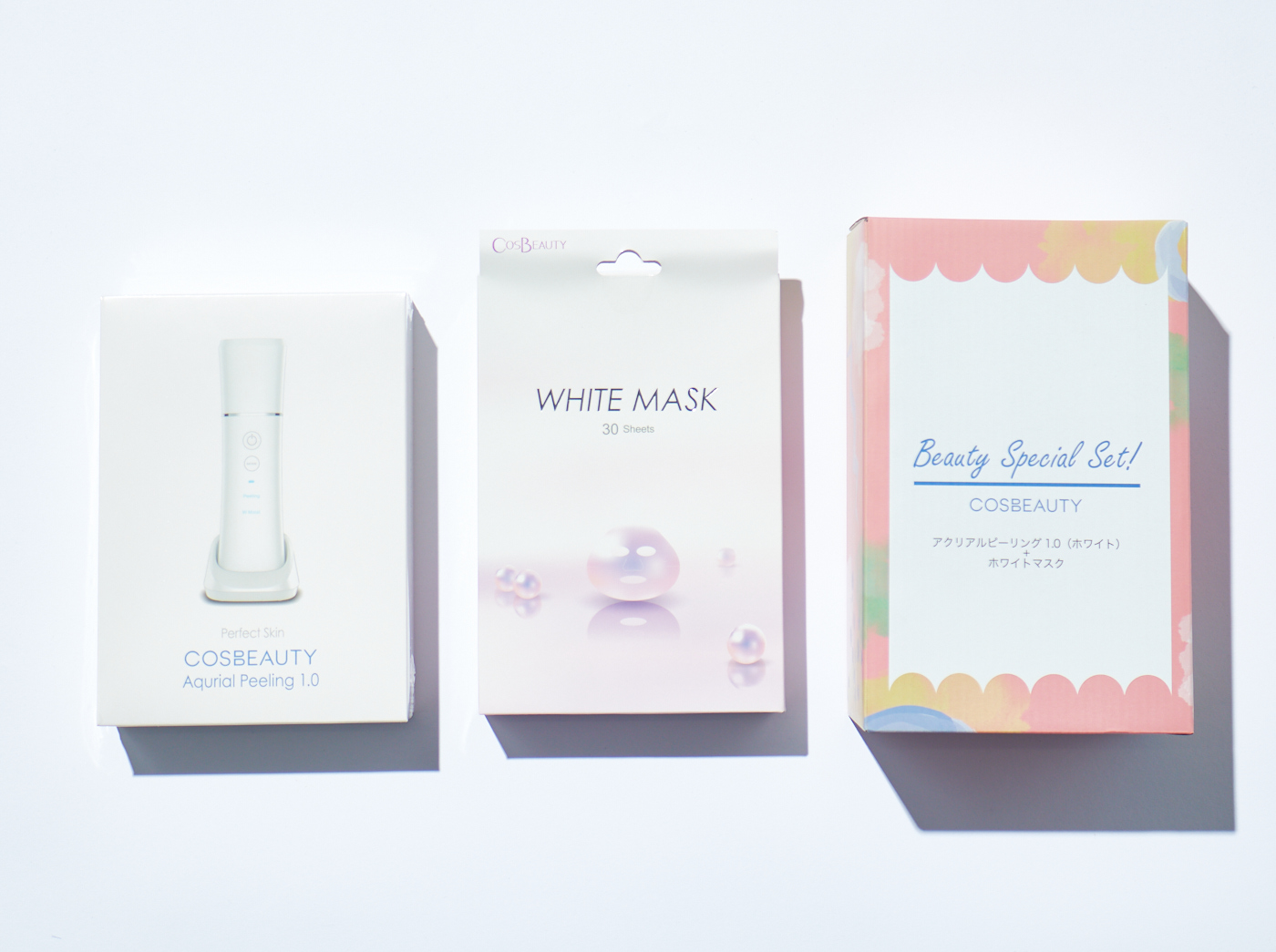 大口注文・法人のお問い合わせはこちら2つの機能を搭載(洗浄・イオン誘導)の美顔器「アクリアルピーリングプロEX」と、医薬部外品ホワイトマスク(30枚)のセット販売です。ピーリングでお肌の汚れを取り除いた後、イオン誘導モードとホワイトマスクを併用してご使用ください。