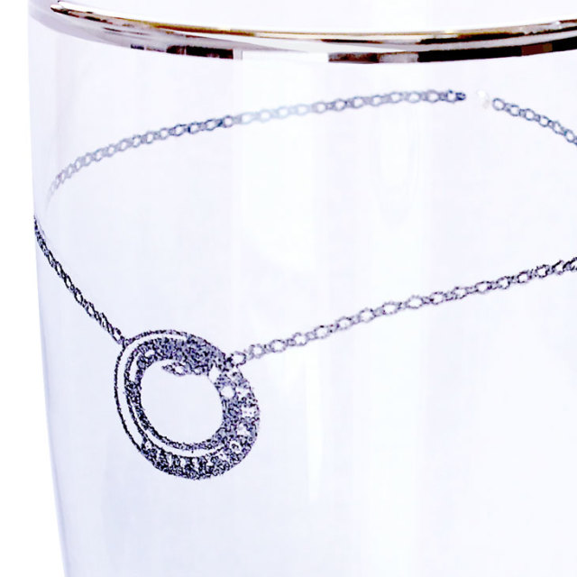 上品な時間を演出するペアグラス「ペアタンブラー」。 1つ1つ手作業で作られるグラスに、同じく手作業でプラチナの縁巻きを施した、高級感溢れる逸品。 グラスにはブランド屈指の人気ジュエリー「ローラシアネックレス」をデザインしました。 ドリンクを注げばチェーンの柄が波面に写りこんで揺れ、ゆったりとした時間をお楽しみいただけます。 ※食器洗い機には対応しておりません。ご注意くださいませ。
