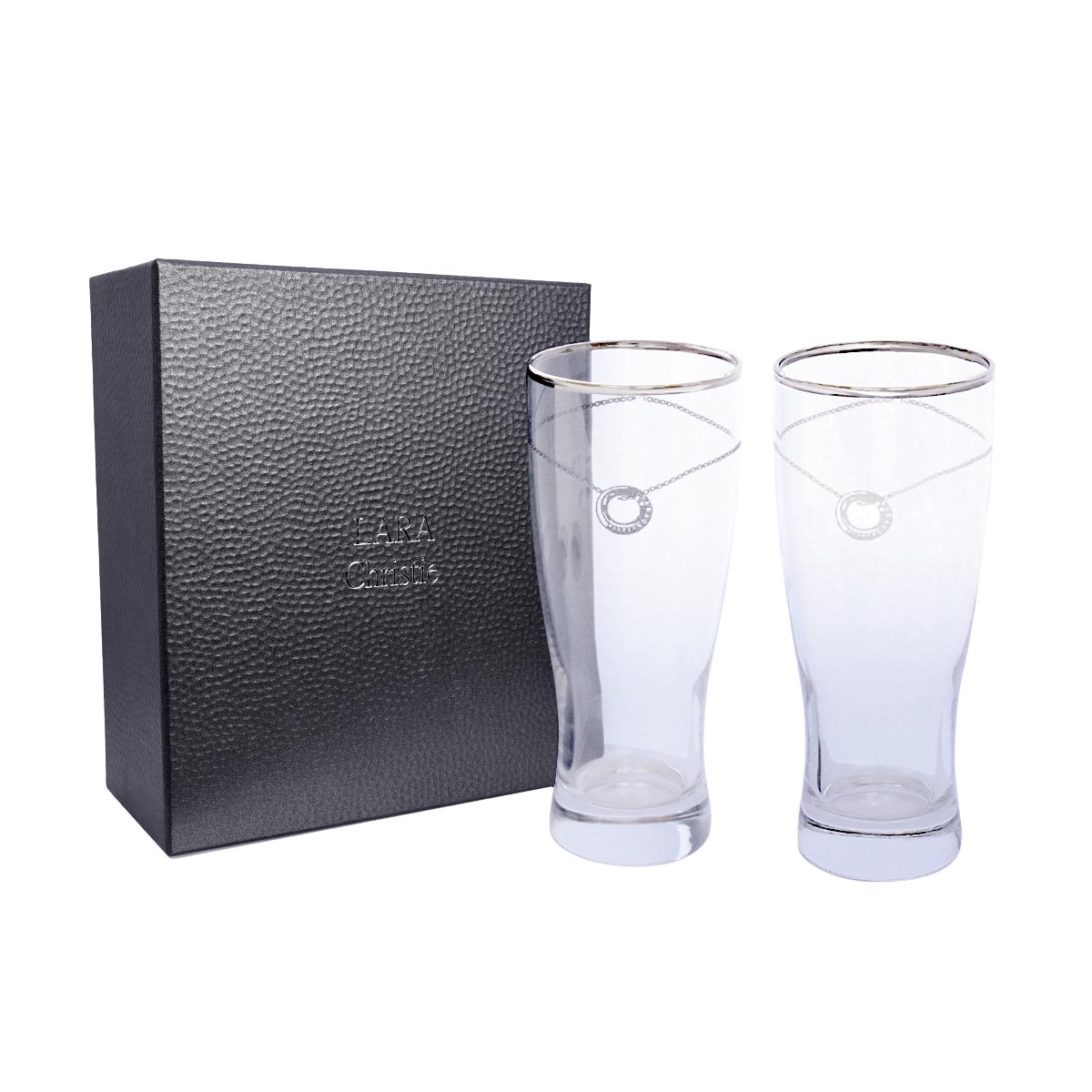 1つ1つ手作業で作られるグラスに、同じく手作業でプラチナの縁巻きを施した高級感あふれる【LARA Christie】の【ペア】ビアタンブラーです。