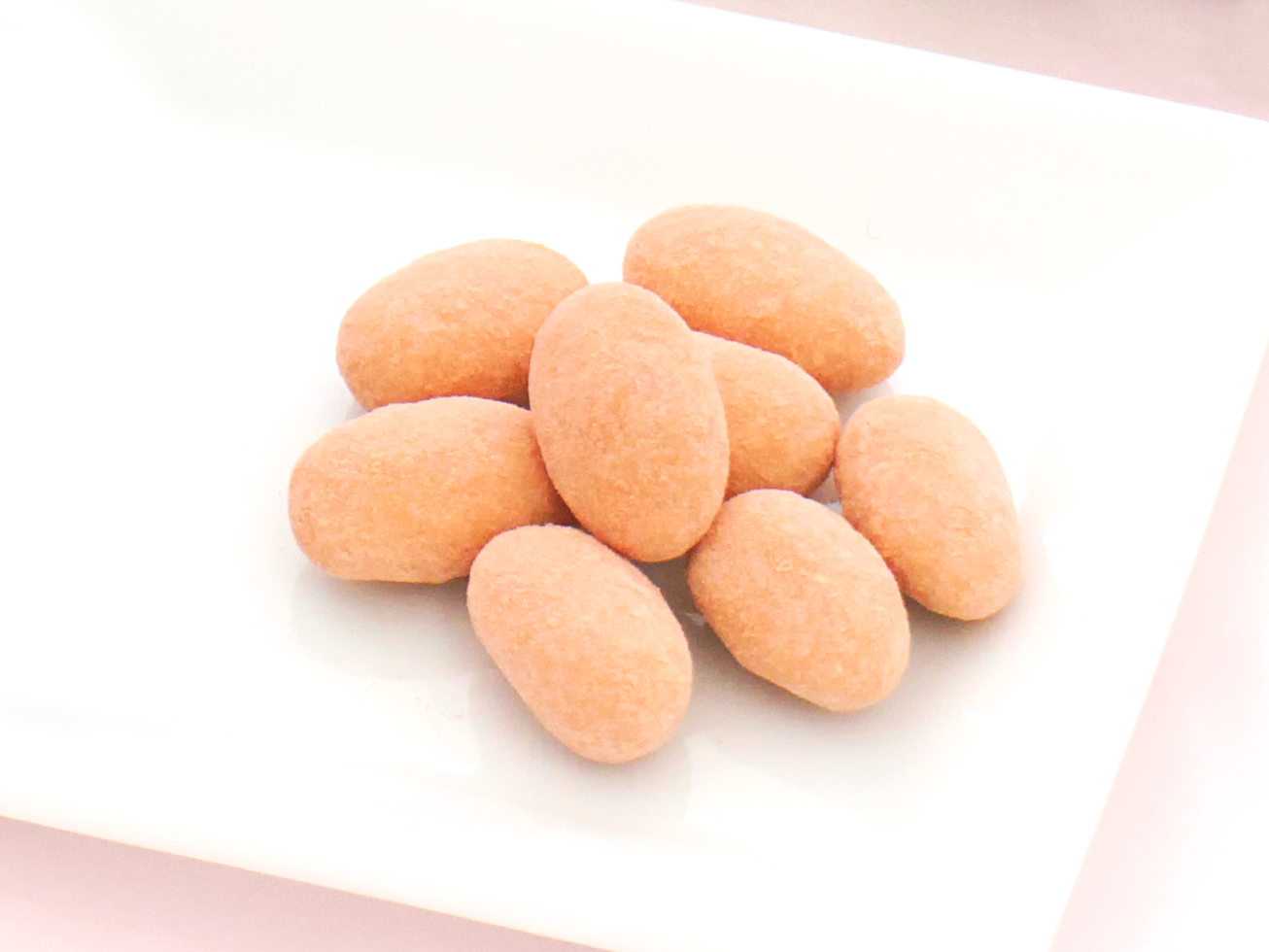 アーモンドをホワイトチョコとイチゴパウダーで包み、甘酸っぱく仕上げました。
