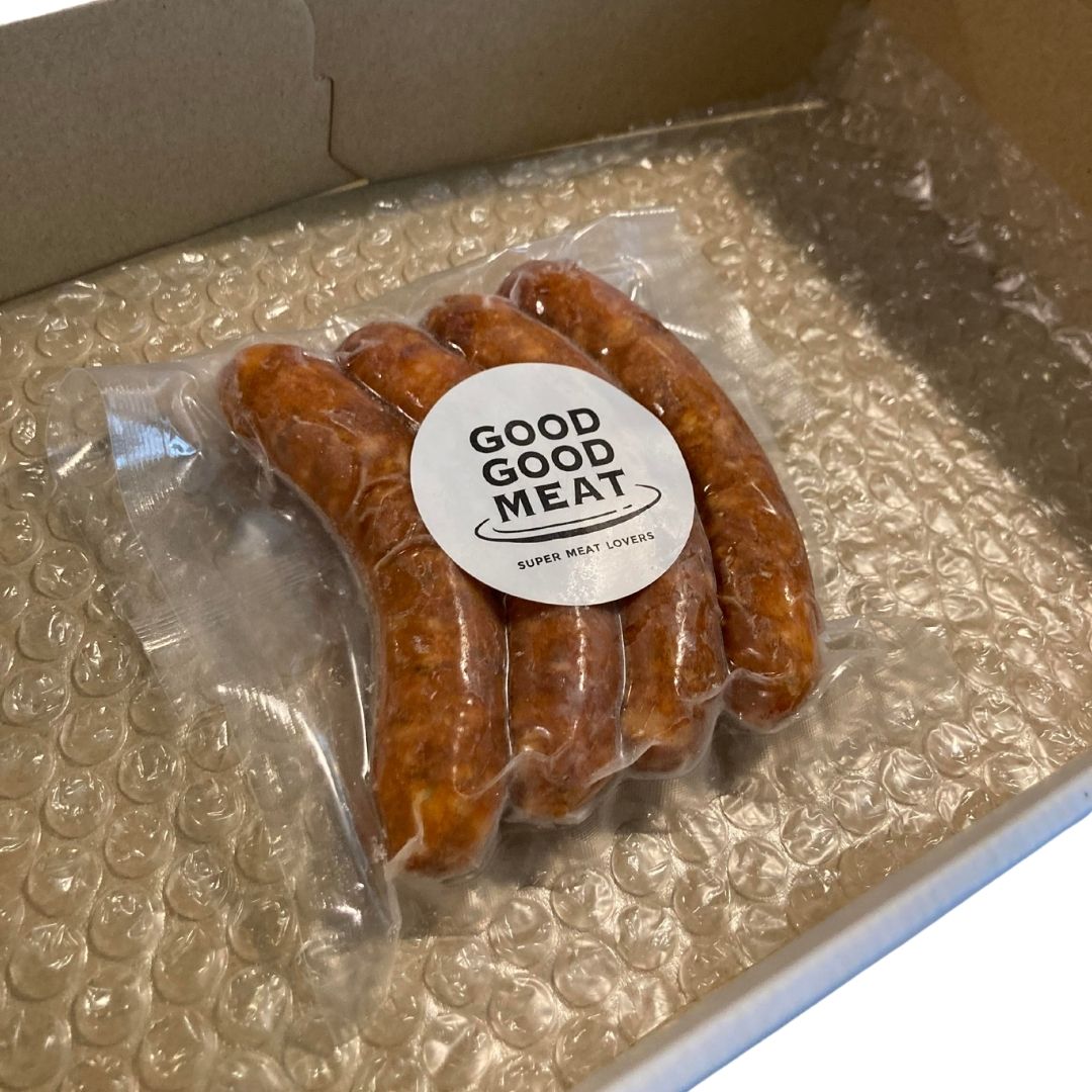 牧草にもこだわり持続可能な畜産を展開している「GOODGOODMEAT(グッドグッドミート)」のチョリソーソーセージ(4本入り)です。厳選された上質な北海道放牧豚を使用しています。香辛料が効いた辛さの中に深い味わいがあるので、お酒のおつまみとしてもおすすめです。