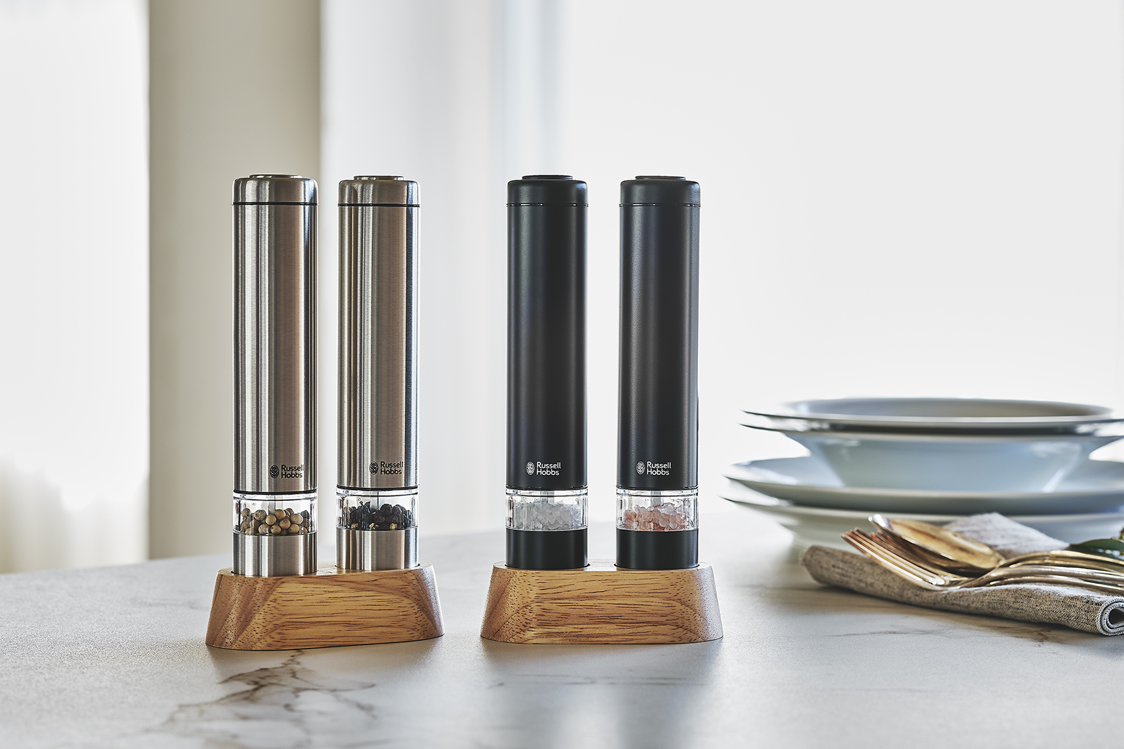 大口注文・法人のお問い合わせはこちらテーブルトップもスマートに、電動ミル ソルトアンドペッパー ミニ。 ダイニングテーブルの便利アイテム、ハンディサイズでコンパクトなためスペースをとりません。 料理の最後の仕上げにも、食事中の一足しにも便利なアイテムです。