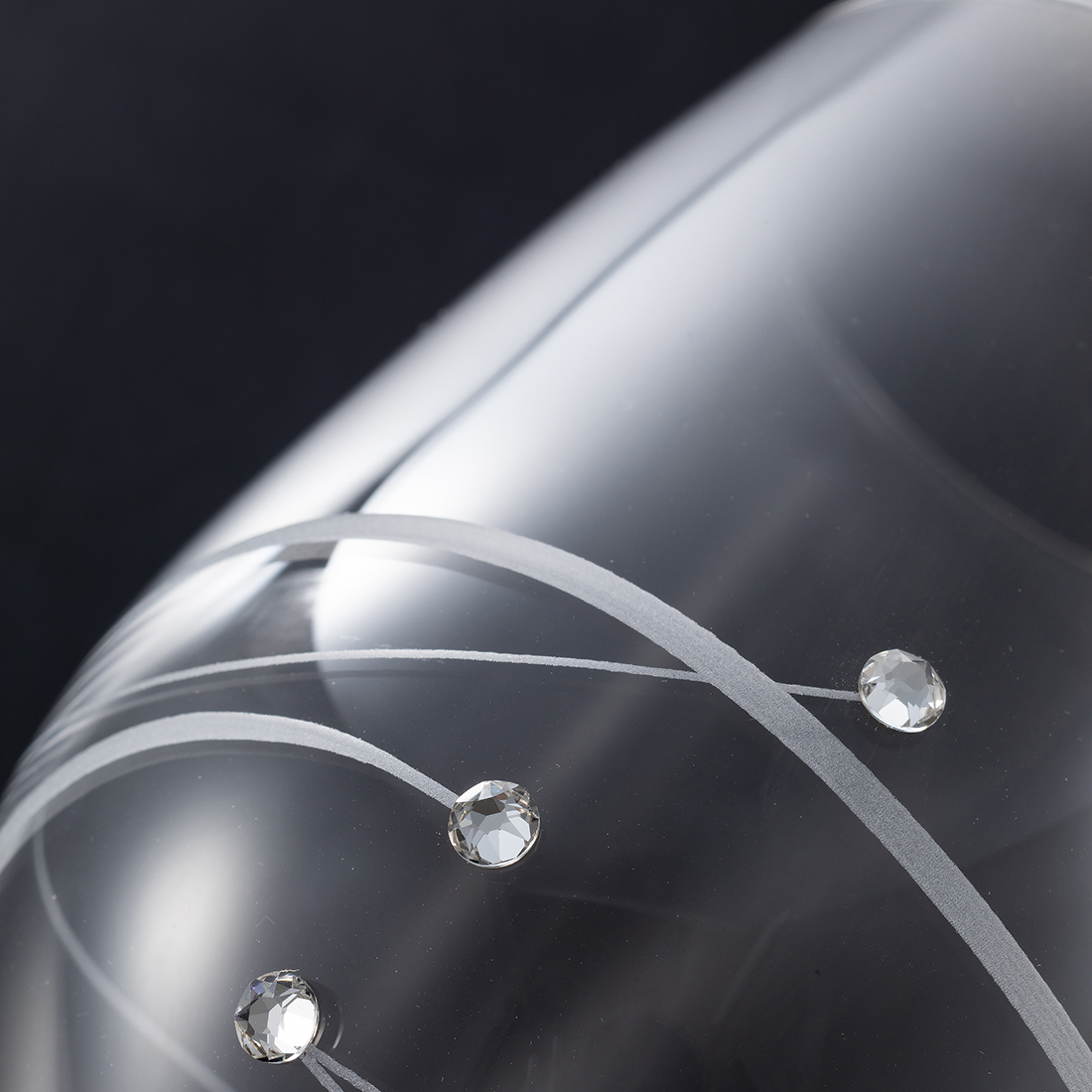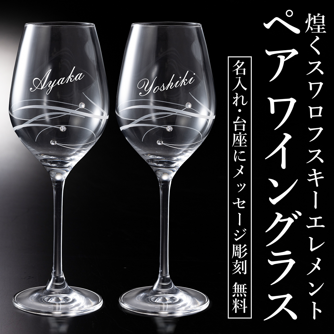 上品で肉薄な高級ワイングラスを使用し、スワロフスキーエレメントを施しました。グラスを指で弾くと澄んだ音が響きます。