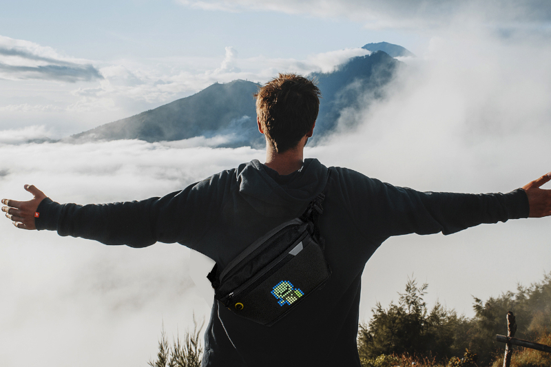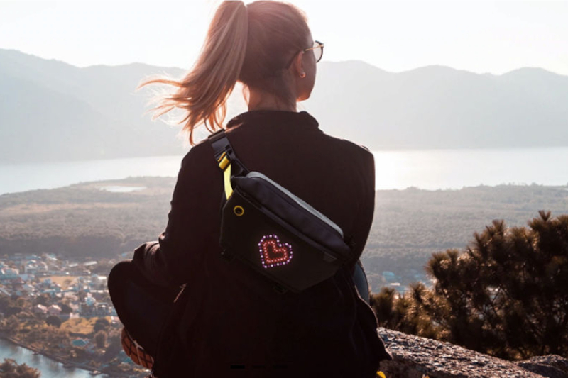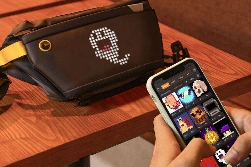 自分で作ったネオンのピクセルアートで被らない、未来を予感させるネオンショルダータイプのバッグです。 本製品の正面には専用アプリケーションを使ってデザインを変更できるLEDパネルが搭載されています。16X16で表現をするピクセルアートをバッグに映して持ち出しできます。