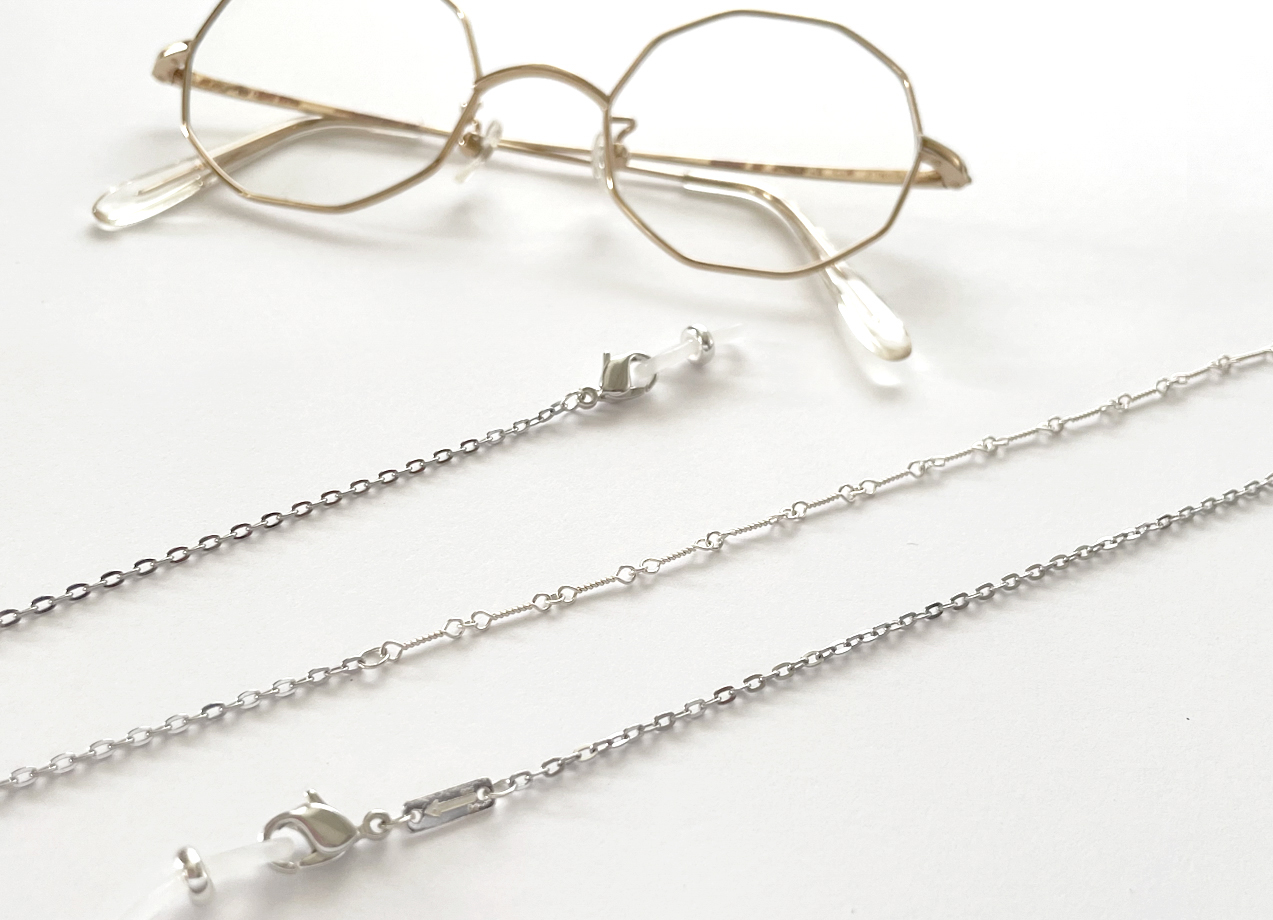大口注文・法人のお問い合わせはこちらメガネにもマスクにも使えるチェーン。メガネ用のシリコンパーツを外せばマスク仕様になります。さらに金具同士をつなげれば、ネックレスにもなります。 素材はSilver925を使用。(チェーン、パーツ部分、全て) 鎖がつながったようなデザインの、シルバーチェーンです。眼鏡やサングラス、マスクの着脱が多いとき、とっても便利です。 ※商品画像の色味はご利用のディスプレイや閲覧環境、撮影状況により実物と異なる場合がございます。