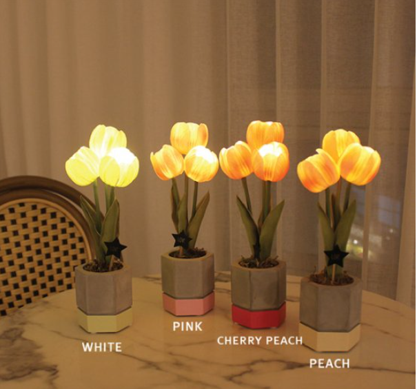 華やかなインテリアとして、夜の癒しの灯りとして、昼夜で違う雰囲気が楽しめるチューリップポットライト。 永遠に枯れることがなく、長く楽しめることから、ギフトとして贈りやすいのも魅力。お花好きの方にはもちろん、母の日や引っ越し祝いなどのお祝いのシーンにも喜んでいただけること間違いなしです。