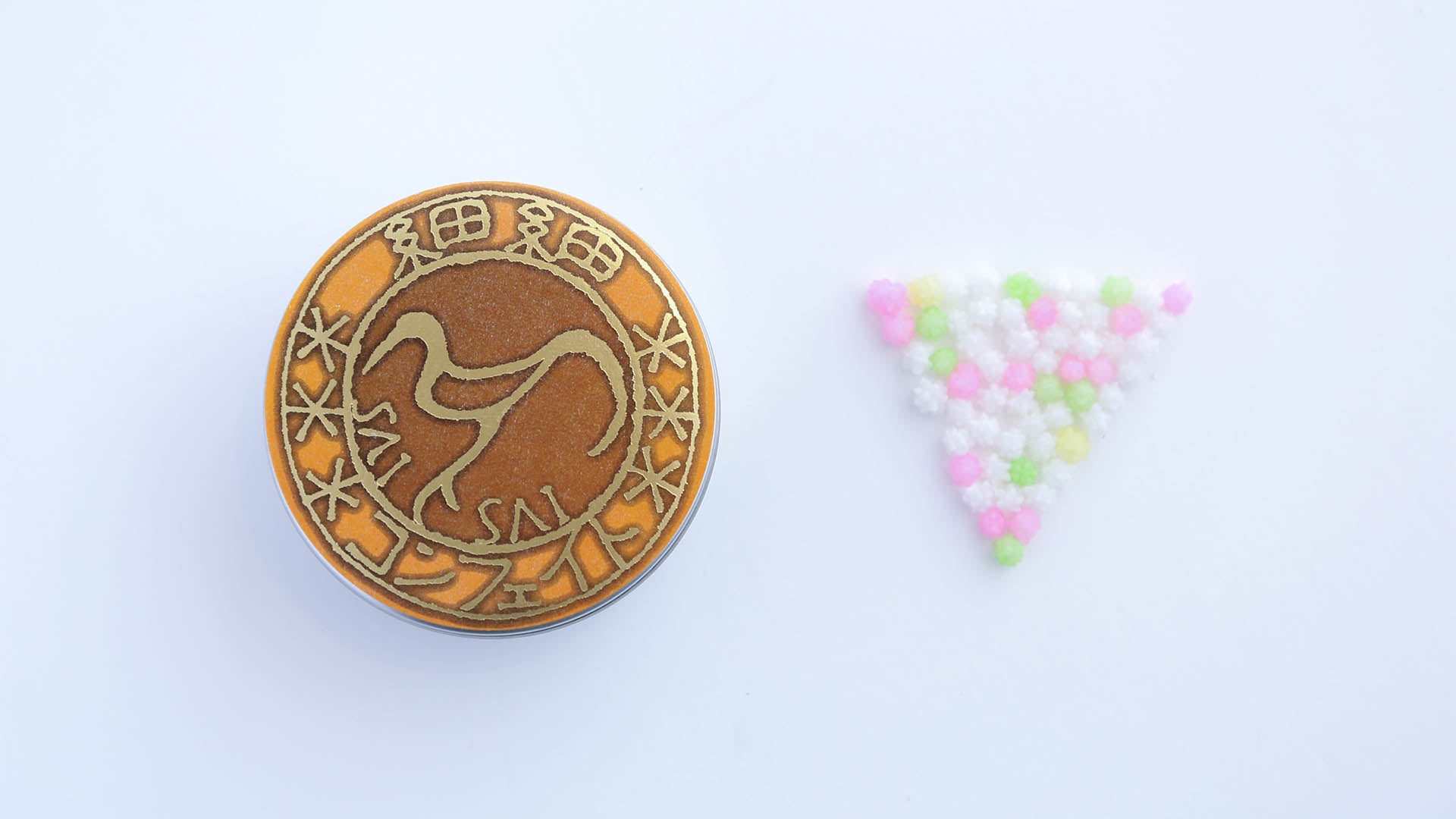 | 原材料 | ●りんご グラニュー糖(国内製造)、 甘藷澱粉/香料、着色料(赤102) ●レモン グラニュー糖(国内製造)、甘藷澱粉/香料、着色料(黄4) ●カラフル グラニュー糖(国内製造)、コーンスターチ/香料、着色料(赤3、青1、黄4、黄5) ●細細-SAISAI- 砂糖(国内製造)、甘藷澱粉/着色料(赤3、黄4、青1) |