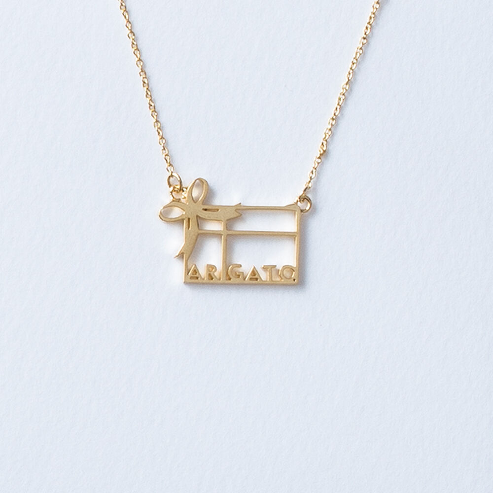 大口注文・法人のお問い合わせはこちら<ARIGATO(レターモチーフ)>ネックレス ●メッセージ:ありったけの心を込めて Send it with all my heart. 〇商品名:ARIGATO(レターモチーフ) ネックレス 〇ヨミ:アリガト 〇イミ:感謝の言葉 〇デザイン:5108 〇コメント:心を込めた言葉の贈り物です。 〇素材:Brass(真鍮) 〇仕上げ:Goldメッキ 〇チェーン長:38cm+5cm 〇生産国:日本