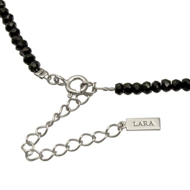 黒色の石の中でも石の艶がとてもよく、カットが光を浴びて美しく輝くブラックスピネルを使った、LARA Christie ブラックスピネルネックレス。 ブラックスピネルはチャレンジ精神と向上心や情熱を高め、目標に向かって努力するように精神的成長を促がす石と言われ、その漆黒の輝きは他人に左右されない意志を持つことが出来るとか。 力強いブラックスピネルネックレスは、単品でネックレスとしてももちろんのこと、お手持ちのペンダントトップと合わせたり、リングに通したり、ダブルネックレスとしてコーディネートしたりと、使い方は無限大です。 無限に広がる可能性を秘めた、 LARA Christie 渾身の1本、ブラックスピネルネックレスは、あなたのコーディネートに欠かせないマストアイテムです。 専用の紙袋・ケースが付属するので大切な人へのプレゼント・ギフトにおすすめです。